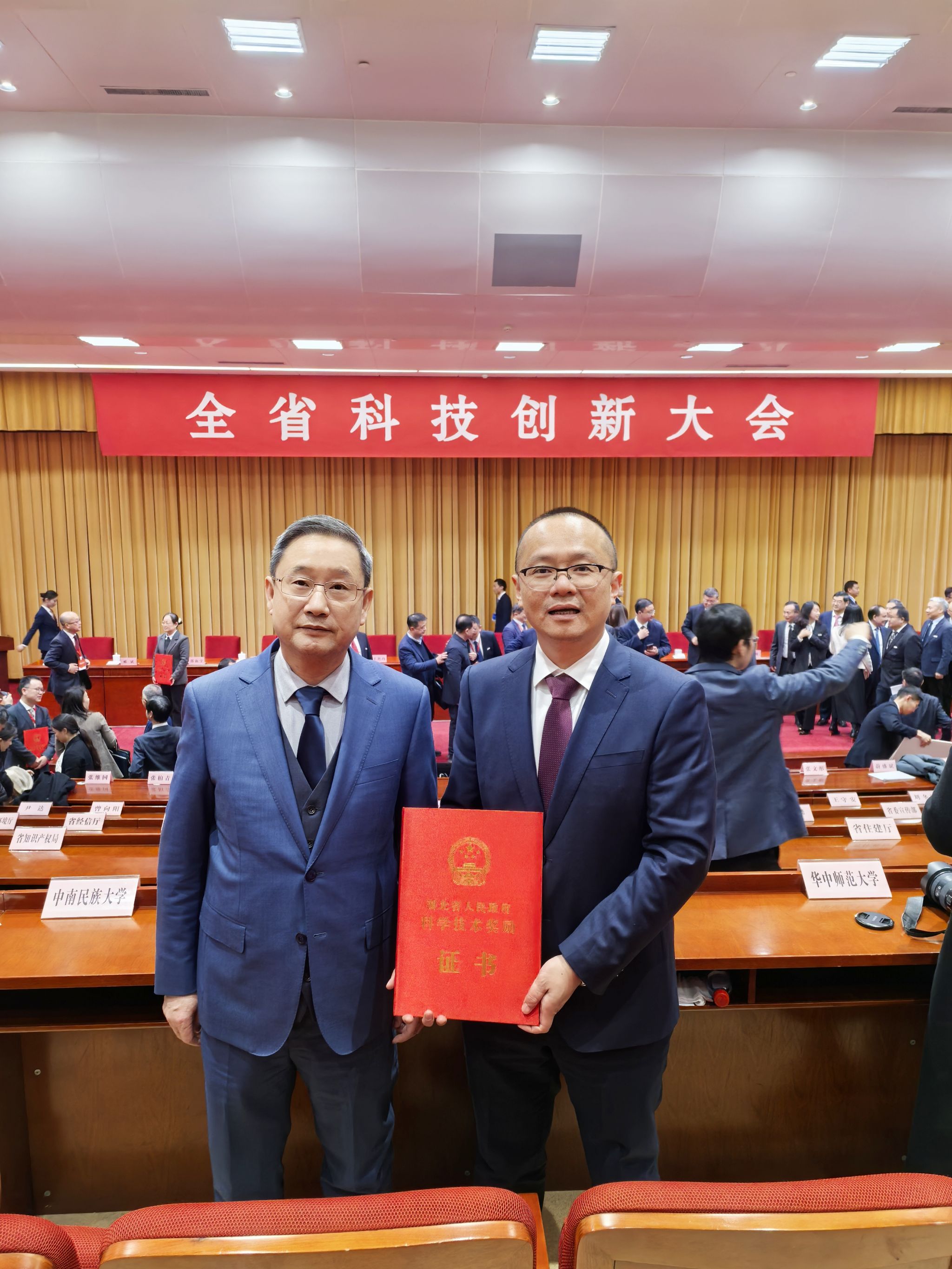 1月6日下午,湖北省科技创新大会在洪山礼堂举行,会上宣读了《湖北省人民政府关于2024年度湖北省科学技术奖励的决定》,共授予337项(人)科学技术奖励,湖北工业大学12项科技成果获2024年度湖北省科学技术奖,其中作为第一完成单位有5项。校党委书记彭育园和获奖教师代表贺行洋参加会议。