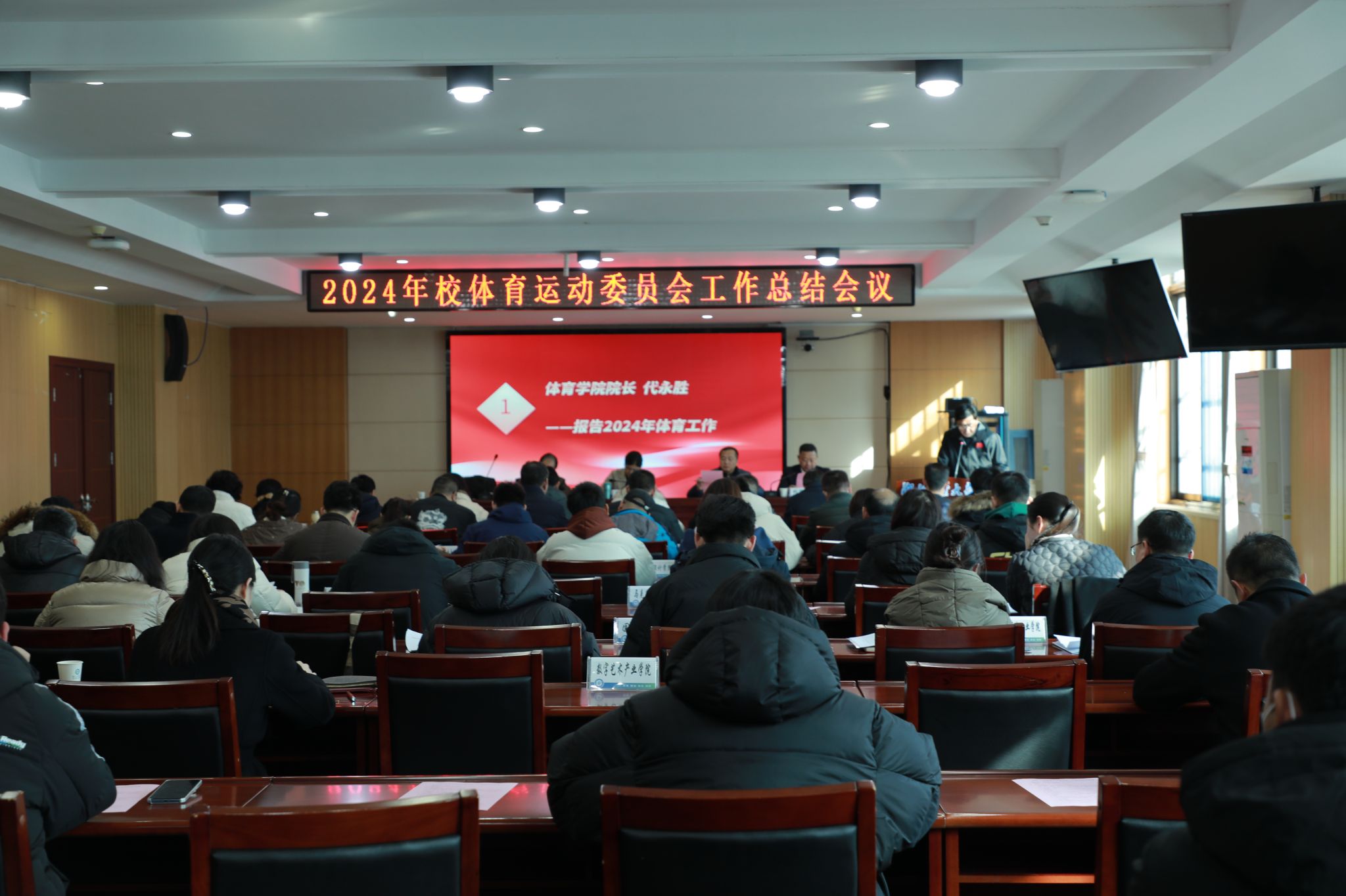 会上,体育学院院长代永胜从体育师资建设、教学创新、学科建设、校园师生健身和课外体育活动等多方面详细报告了 2024 年体育工作总体情况。副院长张军平通过详实的数据对比和分析报告了 2024 年学校《国家学生体质健康标准》测试结果及“梧桐杯”运动会运行情况。在颁奖环节,校党委副书记胡晓艳、学工部(处)长黄勇、工会常务副主席王皑、体育学院院长代永胜为“先进体育工作者”奖、体育道德风尚奖、年度进步奖、梧桐杯运动会团体总分前三名获奖集体及个人颁奖。
