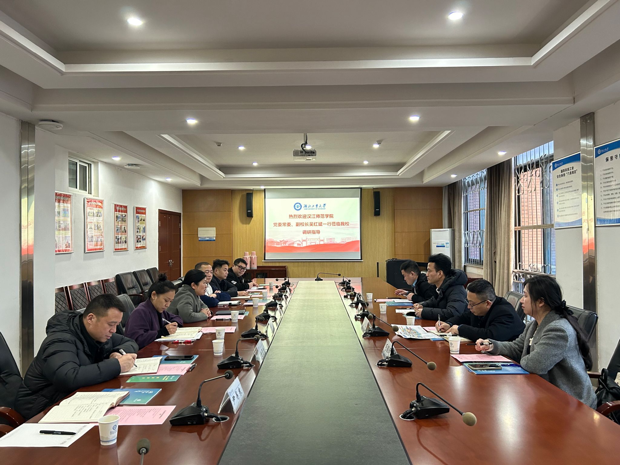 1月15日下午,汉江师范学院党委常委、副校长吴红斌一行来校调研“一站式”学生社区建设,校党委副书记胡晓艳出席调研座谈活动并陪同走访参观,学工部部长黄勇主持调研座谈会。