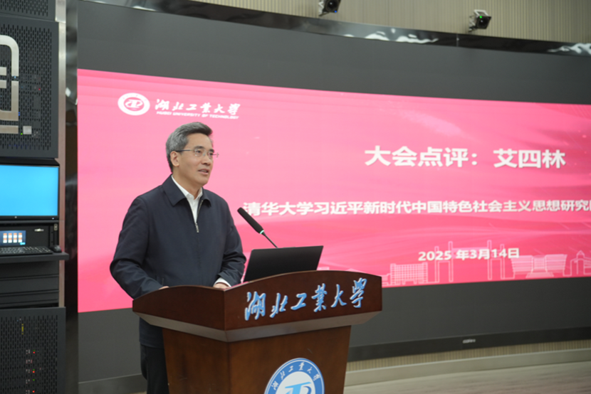 为重温习近平总书记在学校思想政治理论课教师座谈会上的重要讲话发表六周年,持续推动思想政治理论课改革创新,发挥思想政治课在立德树人中的关键作用,3月14日上午,湖北工业大学马克思主义学院在学院5楼虚拟仿真思政课体验教学中心举办重温习近平总书记“3·18”重要讲话暨思政课高质量发展研讨会。清华大学习近平新时代中国特色社会主义思想研究院院长艾四林教授应邀出席会议。校党委副书记胡晓艳参加会议。会议由马克思主义学院党委书记陈燕主持。