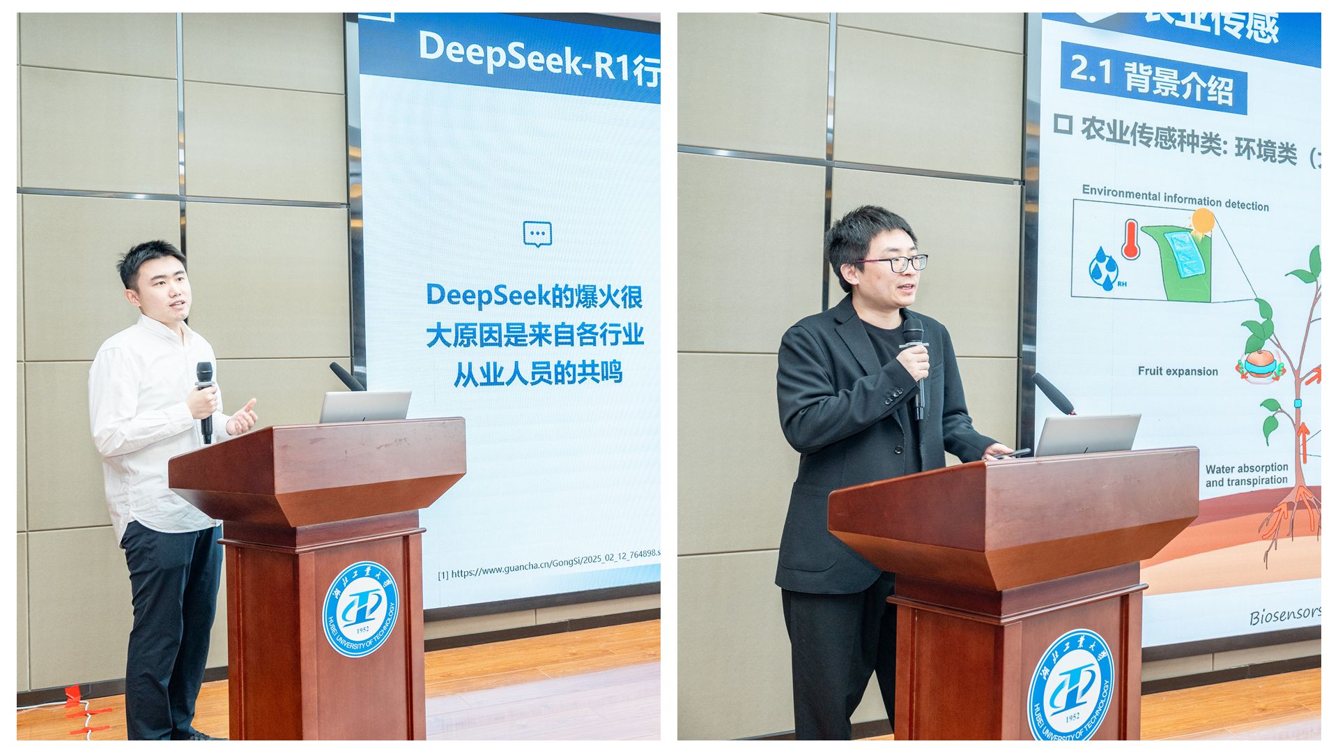 在前沿分享环节,来自华中科技大学白翔团队的刘禹良研究员介绍了人工智能赋能多学科交叉融合的经验,华中农业大学青科突击队长雷红伟副教授分享了新型农业传感器的制备与应用研究等创新技术。