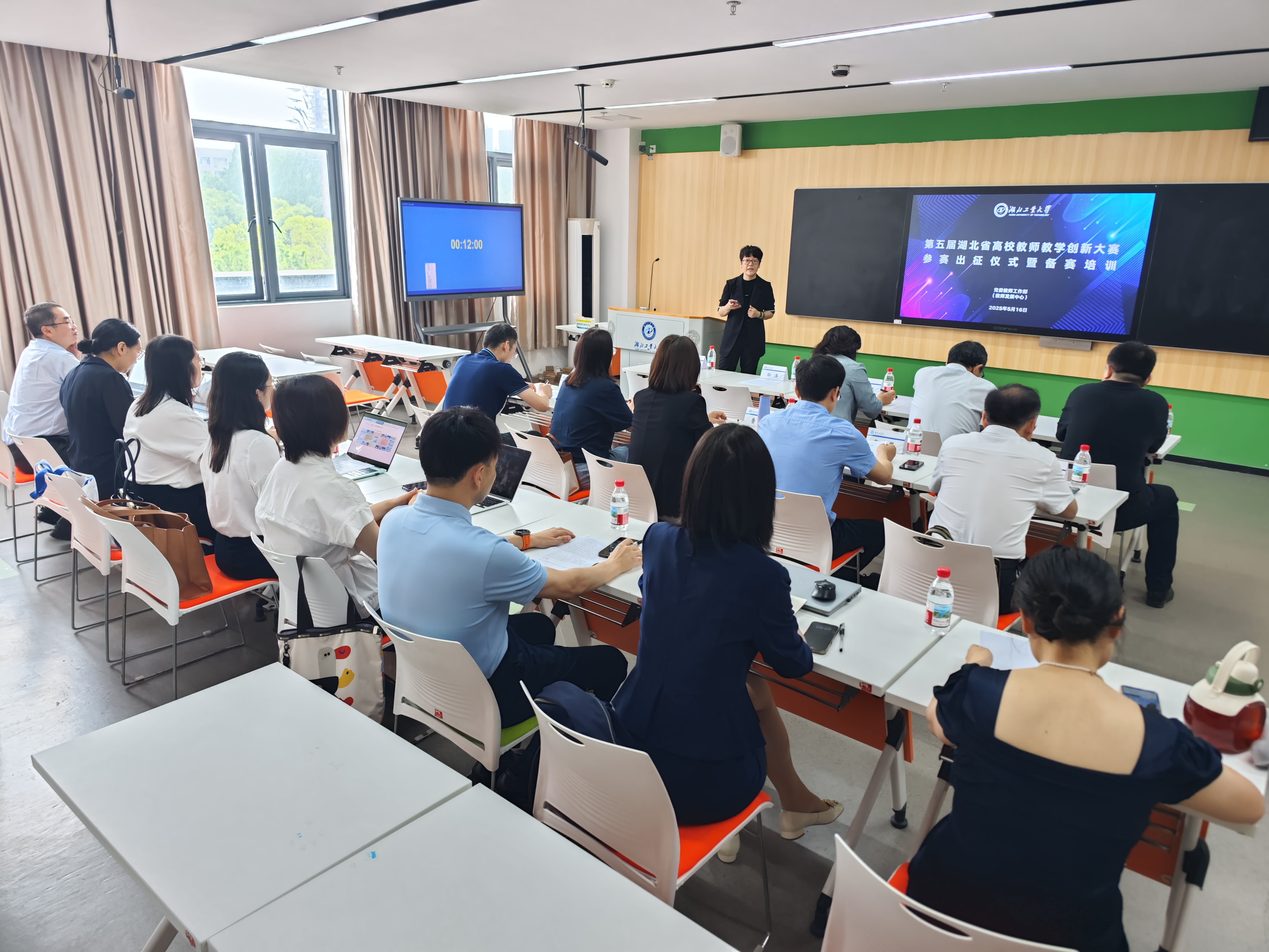 5月16日上午,我校举行第五届湖北省教师教学创新大赛参赛出征仪式暨备赛培训。校党委副书记胡晓艳出席活动并深入备赛培训现场观摩指导。教务处、职业技术师范学院及各参赛选手所在学院的负责同志担任培训指导专家。