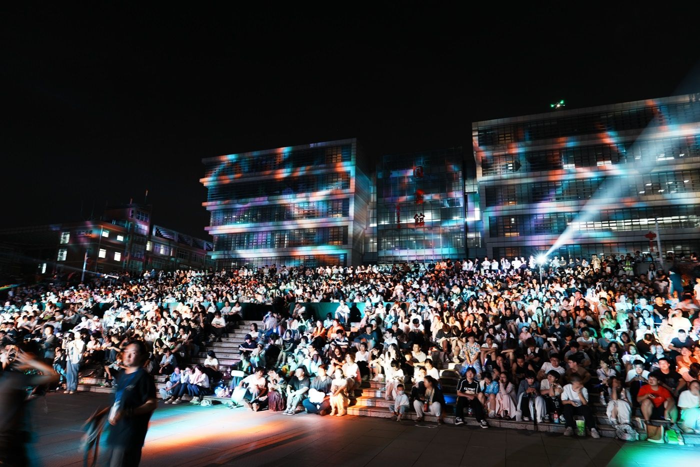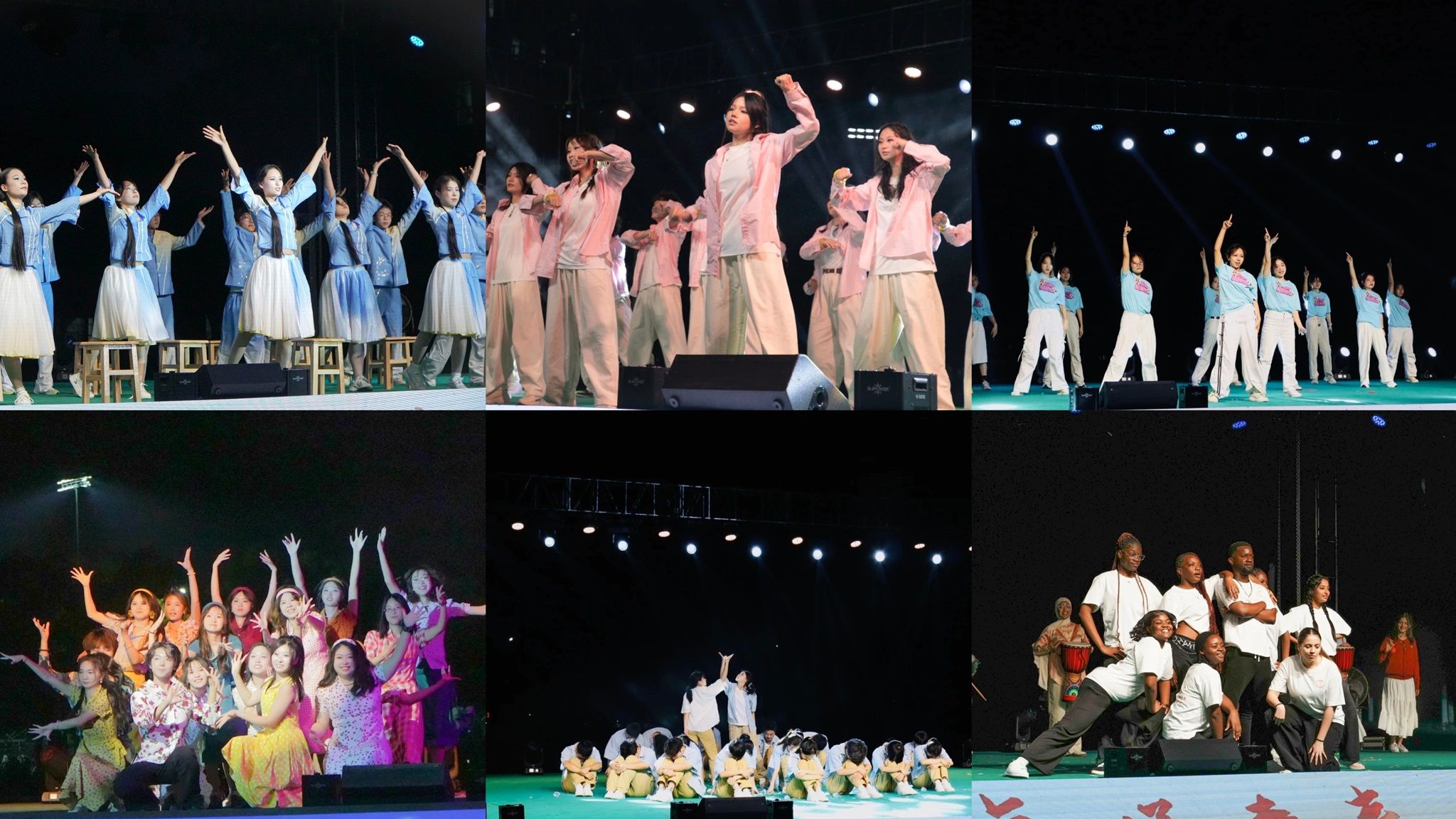 各参赛节目表演结束后,灯光秀和国际学院表演以绚丽的视觉效果和多元文化融合的表演将大赛推向高潮。展现了湖工大学子的青春活力,引得台下观众阵阵欢呼,瞬间点燃了全场气氛。