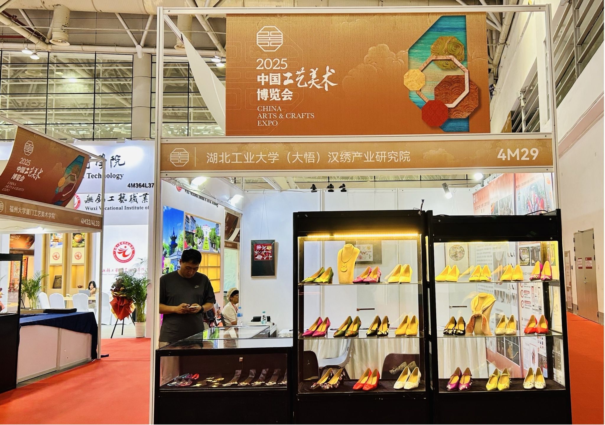 据介绍,中国工艺美术博览会是行业规模最大、规格最高的的权威展会。湖北工业大学(大悟)汉绣产业研究院实践成果,在国家级展览平台上的亮相,不仅是学校设计赋能古法刺绣技艺在新时代焕发新生的精彩展示,更是我校服务地方文化经济发展能力的有力证明!