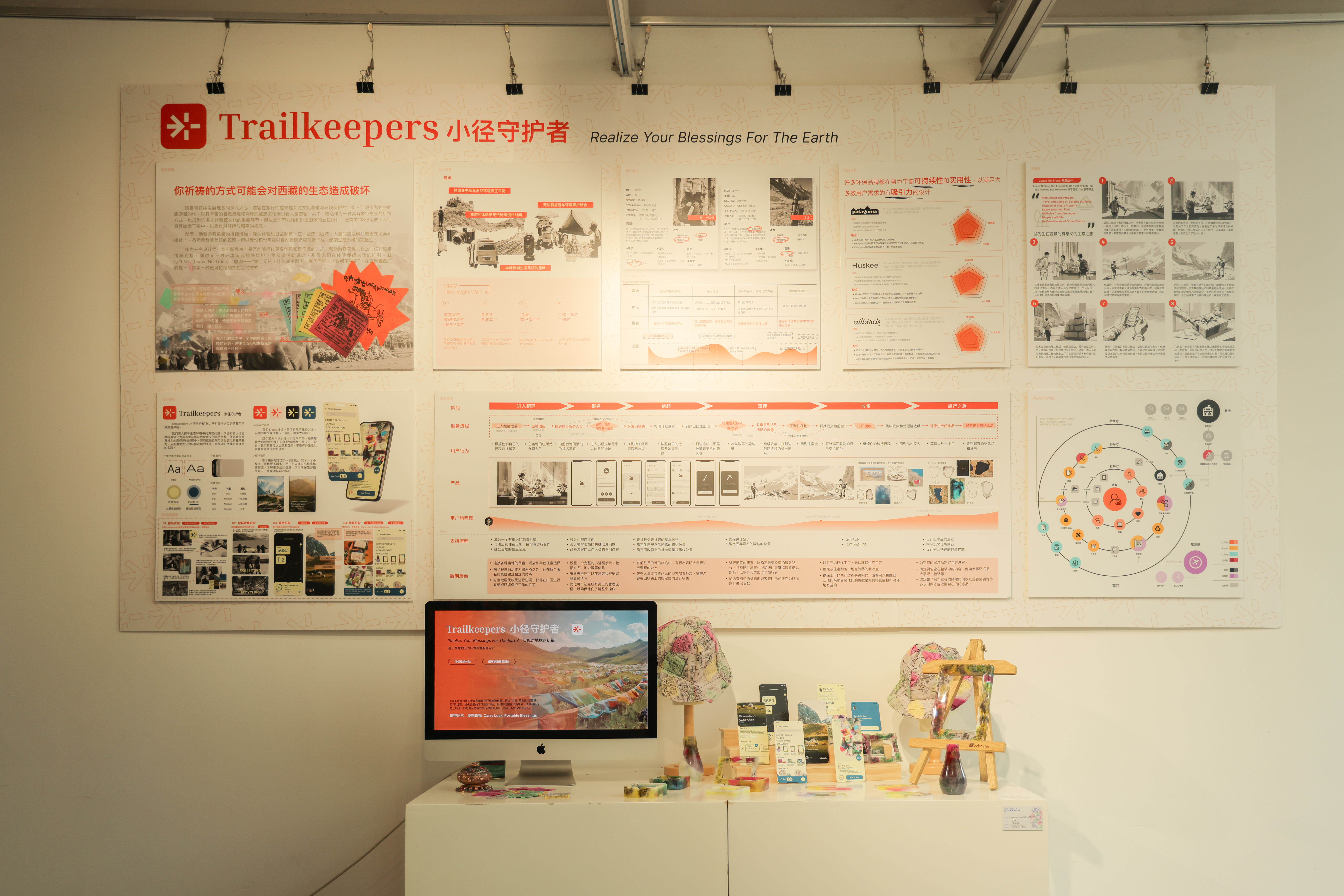 将生活观察化作设计课题,“00 后”创作者从现实土壤中汲取灵感,让创意照进真实世界。一次西藏之行,让毕业生龚政关注到“隆达”背后的生态隐患,游客抛洒这种五色纸片,表达对好运和和平的祝愿,但“隆达”难以降解,堆积造成环境负担。由此,龚政设计了《小径守护者》环保服务。