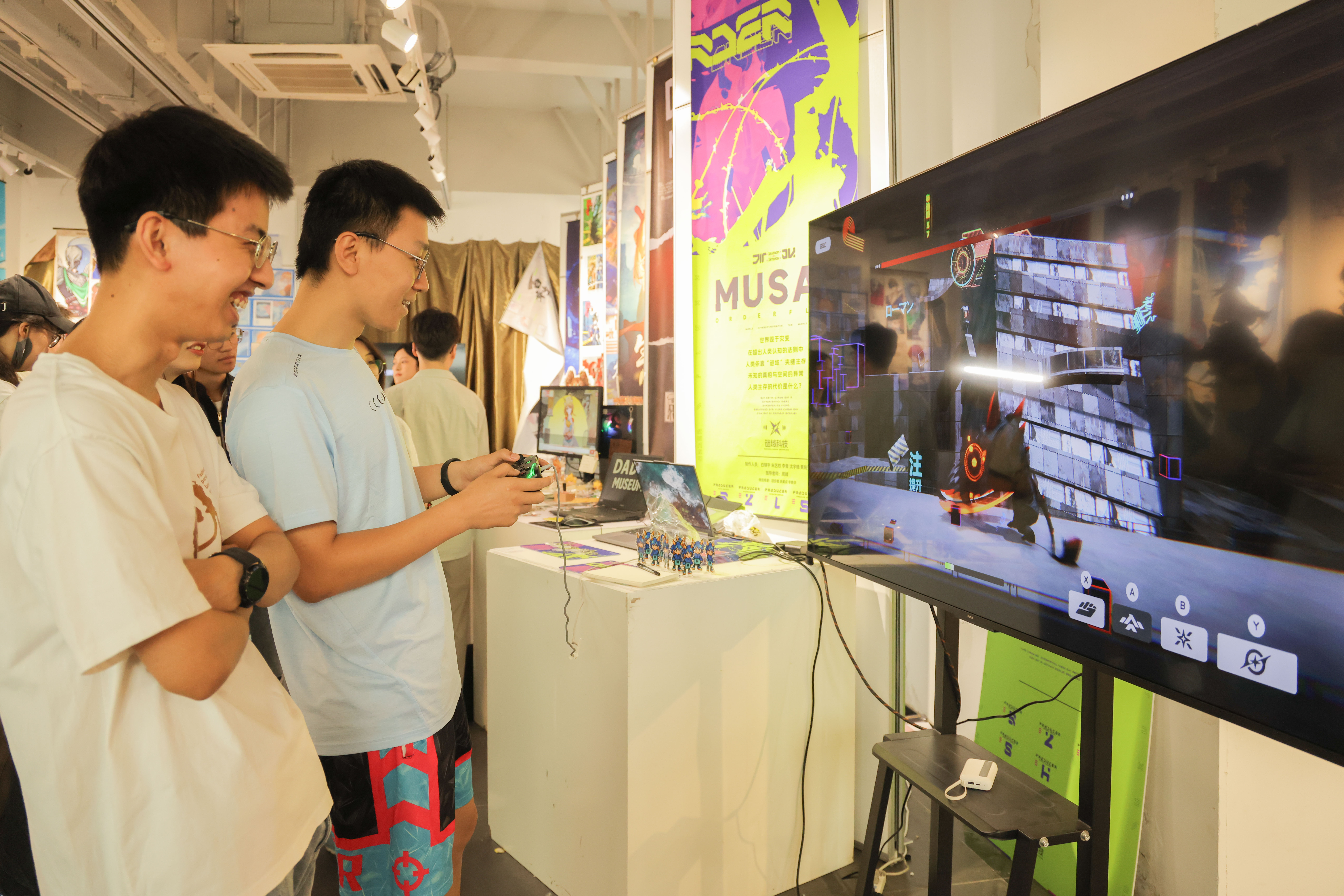 ▲设计艺术节展览现场,观展学生正在试玩游戏作品