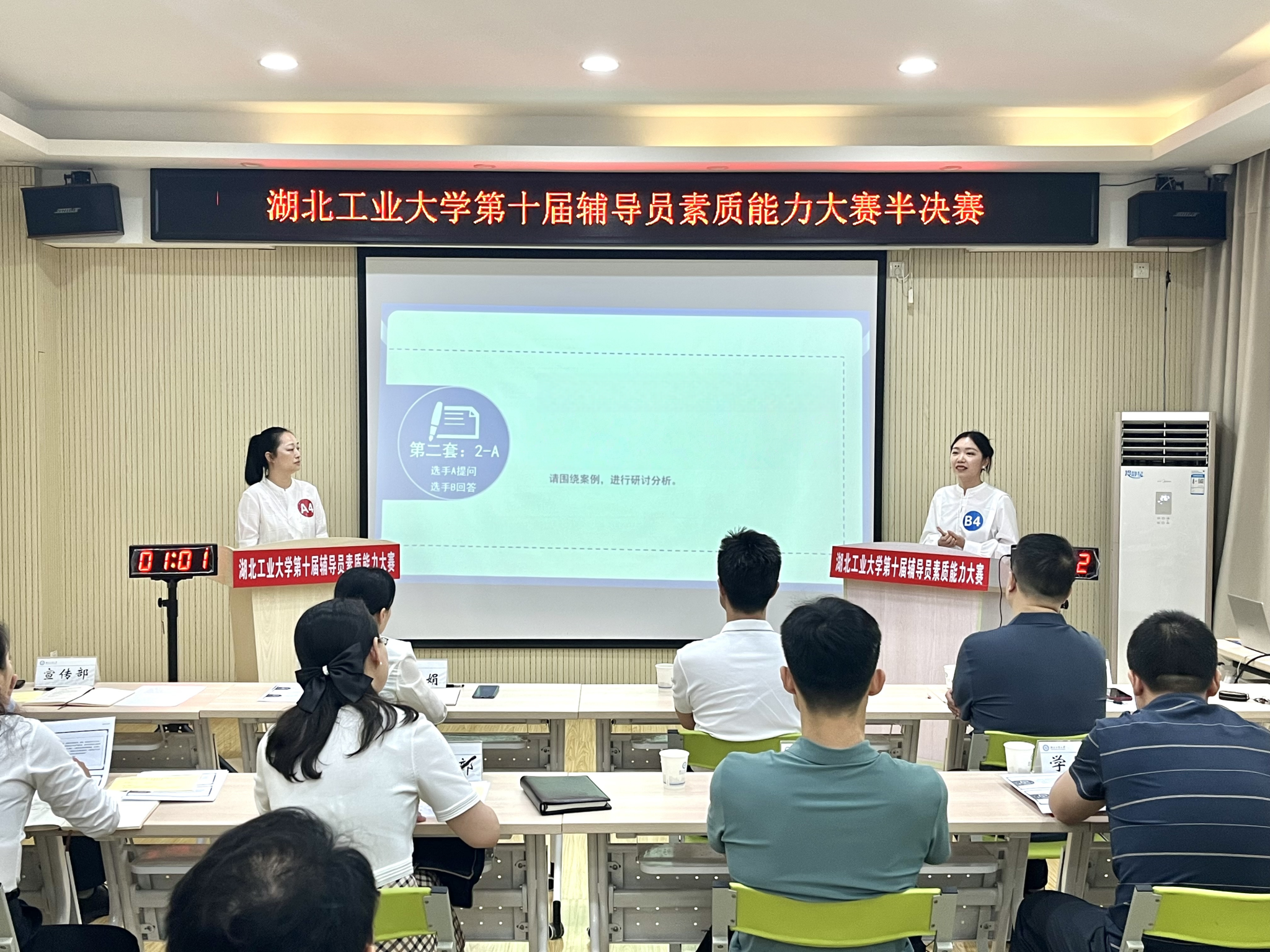6月19日上午,湖北工业大学第十届辅导员素质能力大赛半决赛在学校心理中心多功能培训室举行。学校全体专职辅导员参加本次大赛,通过初赛、复赛的激烈角逐,共有18名选手脱颖而出参加本次半决赛。