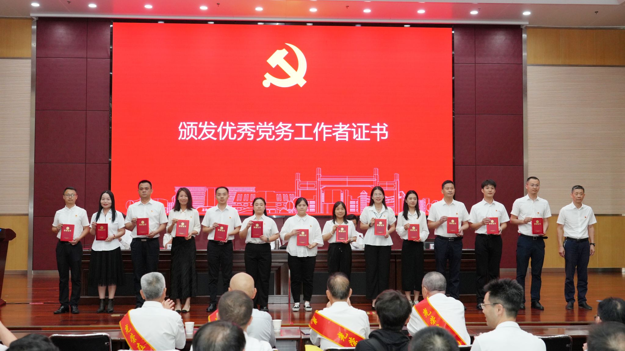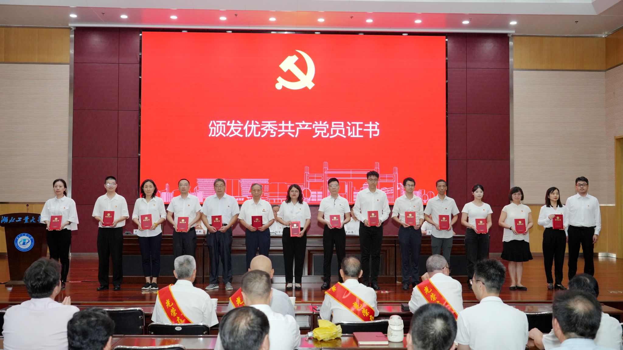 校党委副书记胡晓艳宣读《学校“两优一先”表彰决定》,50名优秀共产党员、35名优秀党务工作者、30个先进基层党组织受到表彰。