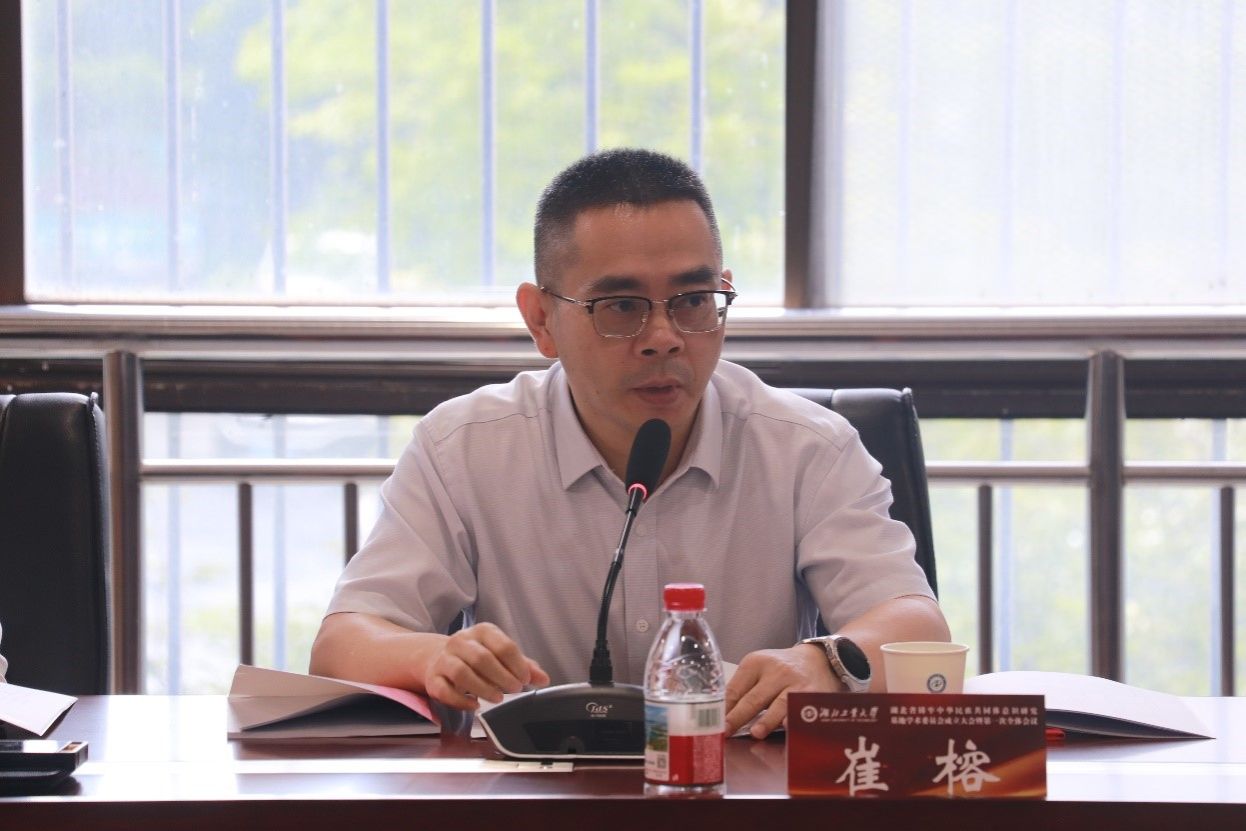 基地首席专家、中南民族大学崔榕教授作表态发言。他表示,基地目前发展态势较好,未来要在理论研究、成果转化、咨政建言、建强团队四个方面发力,把湖北工业大学“工”字招牌擦亮,形成铸牢中华民族共同体研究的湖工学派。