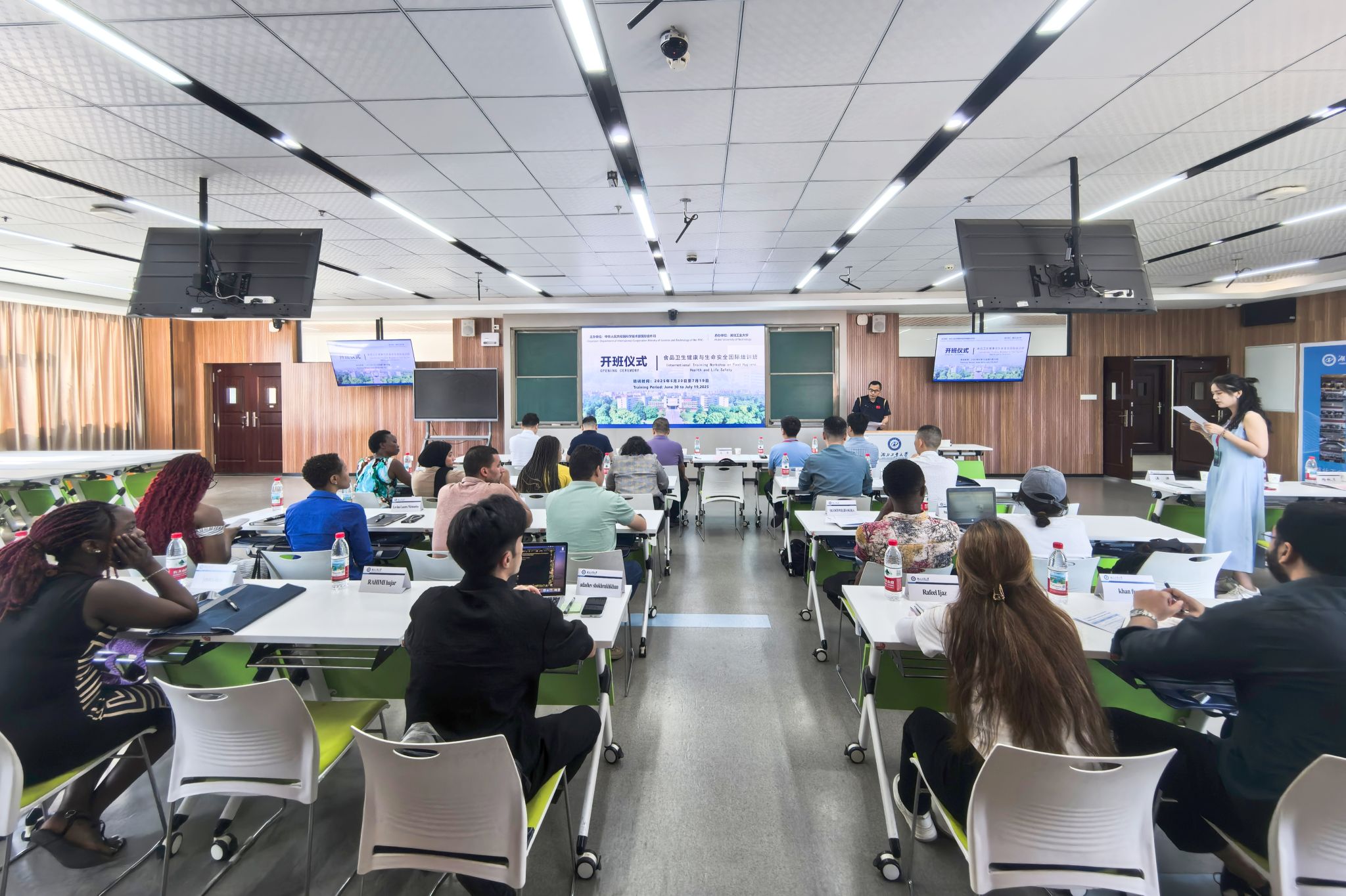 6月30日,“食品卫生与生命安全国际培训班”在湖北工业大学开班。来自11个发展中国家的20名食品卫生与生命安全领域的技术人才与学者,在此开启为期20天的学习交流。校党委常委、副校长贺行洋出席开班仪式并致辞,生命科学与健康工程学院、职业技术师范学院相关负责人参与仪式,职业技术师范学院院长马丹主持仪式。