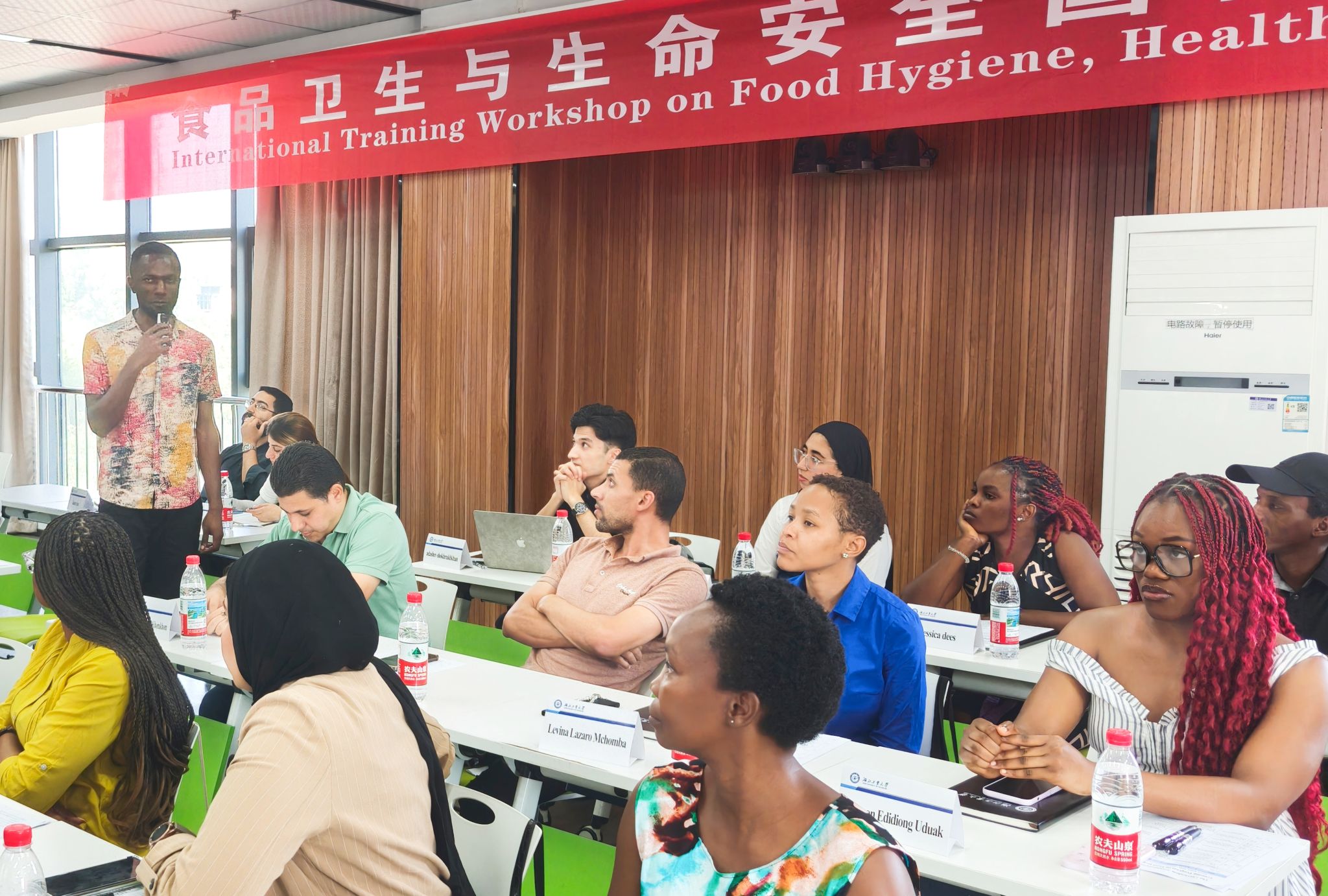 来自埃塞俄比亚、坦桑尼亚、肯尼亚、南非、越南、尼日利亚、乌兹别克斯坦、巴基斯坦、摩洛哥、利比里亚、乍得的20位学员依次自我介绍后,生命科学与健康工程学院高志明教授以《从食品制造到人体健康:可食性天然多糖的应用》为题开启第一讲培训。