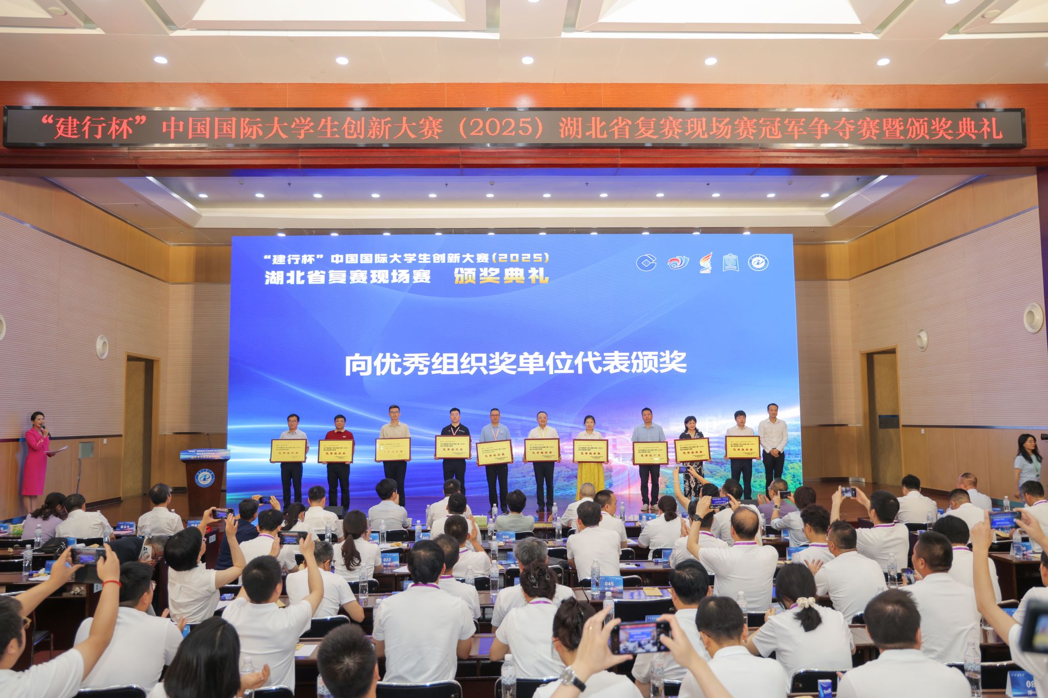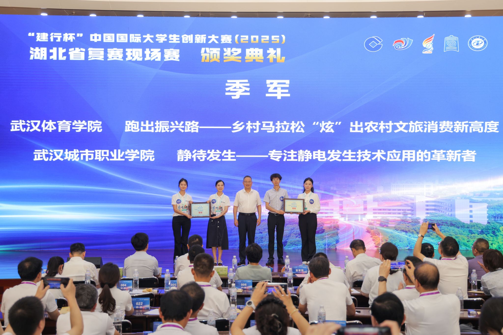 冠军争夺赛之后,今年首次举行了颁奖典礼,分别向获得省赛金奖的59个项目团队代表、获优秀组织奖的10所高校代表、和冠军、亚军、季军团队代表颁奖。