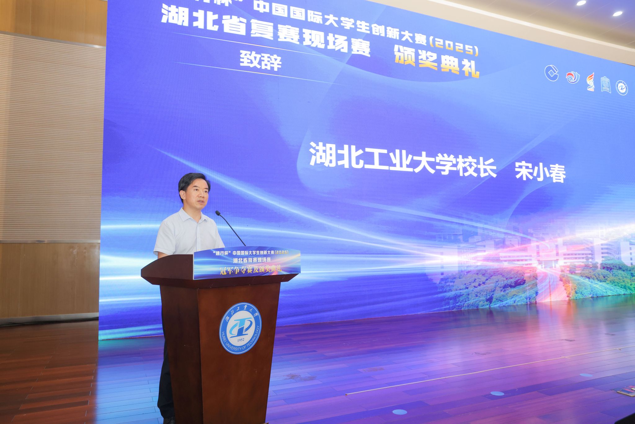 湖北工业大学校长宋小春在致辞中表示,学校在11年的赛事承办中,深刻感受到荆楚大地150万大学生迸发出的强劲活力,近三年参赛的报名数量持续增长,体现出当代大学生对时代之问、现实之需和未来之变的深刻把握,大家用在课堂上学到的知识解决实际问题,在创新实践中增本领、长才干,借助大赛平台展示创新科技成果和创业公司,充分展现了青年学子的创新创业激情与能力,体现了高校人才培养的厚度与双创浓郁的氛围。