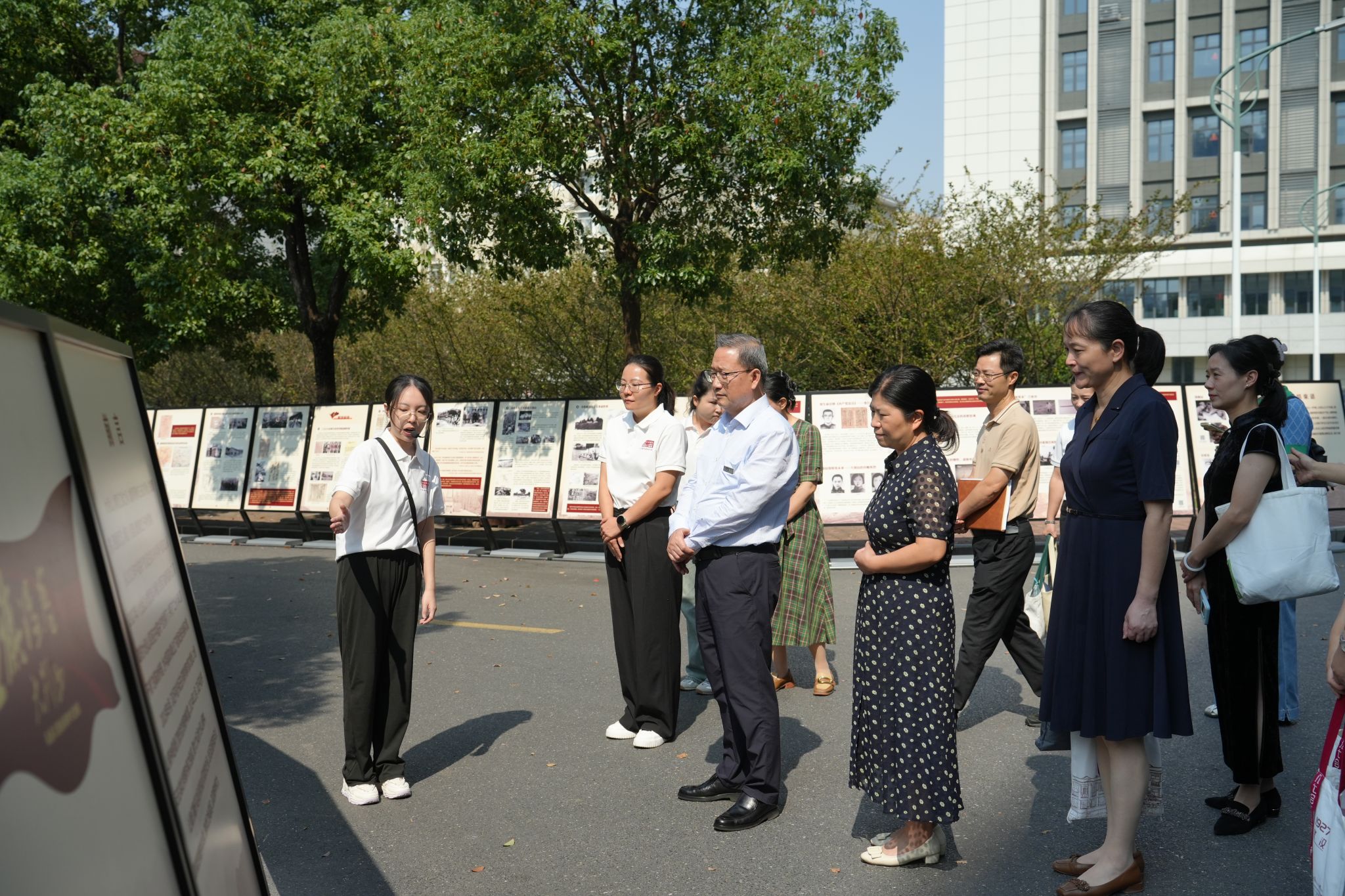 授课结束后,师生前往报告厅门外继续观看专题巡展《红旗漫卷大别山》。