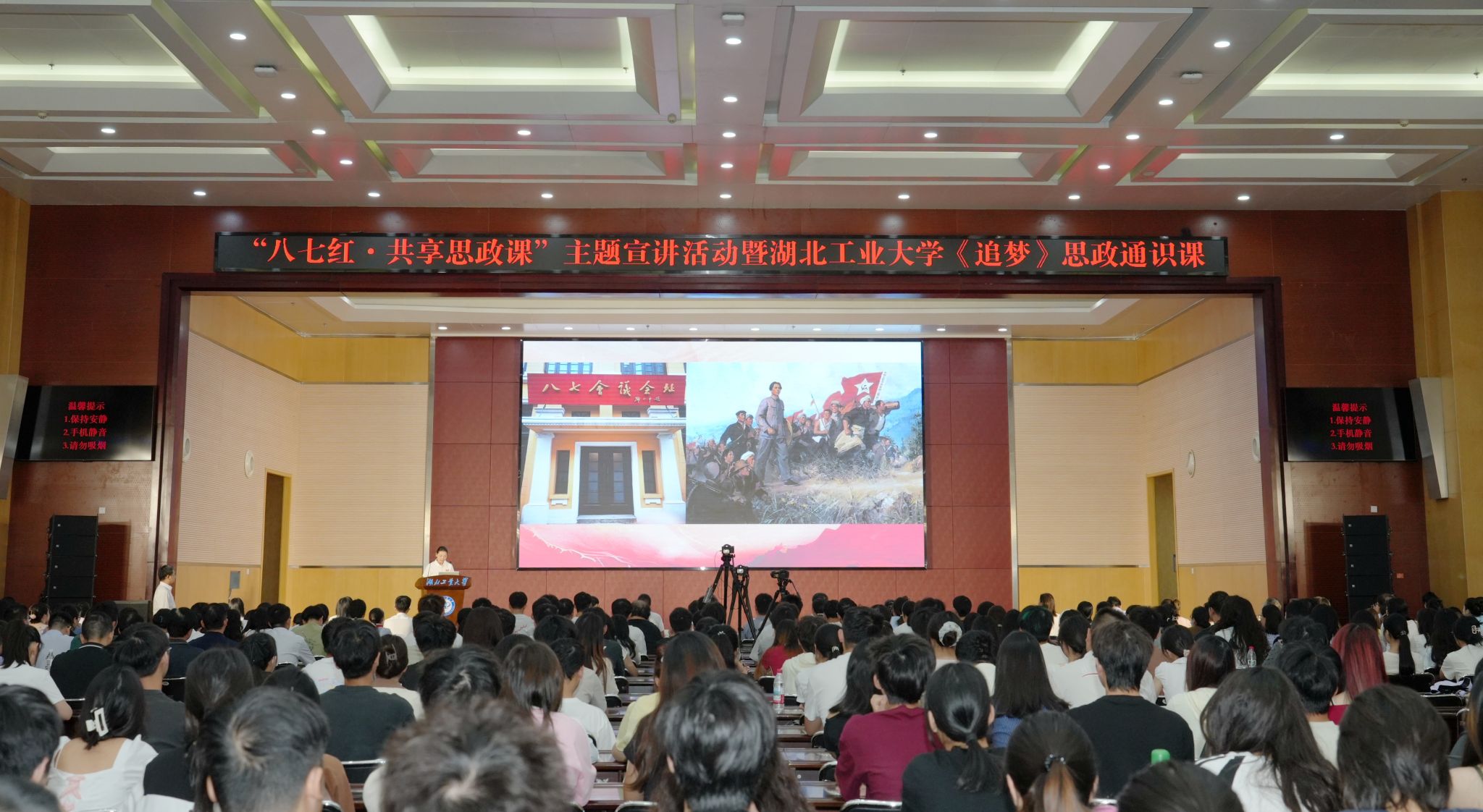 教授主讲、舞台剧演绎、诗歌朗诵、影视片段……10日上午,一堂由湖北工业大学与八七会议会址纪念馆联合打造的“八七红·共享思政课之大别山精神专题课程暨湖北工业大学《追梦》思政通识课”,在学校图书馆报告厅开讲。