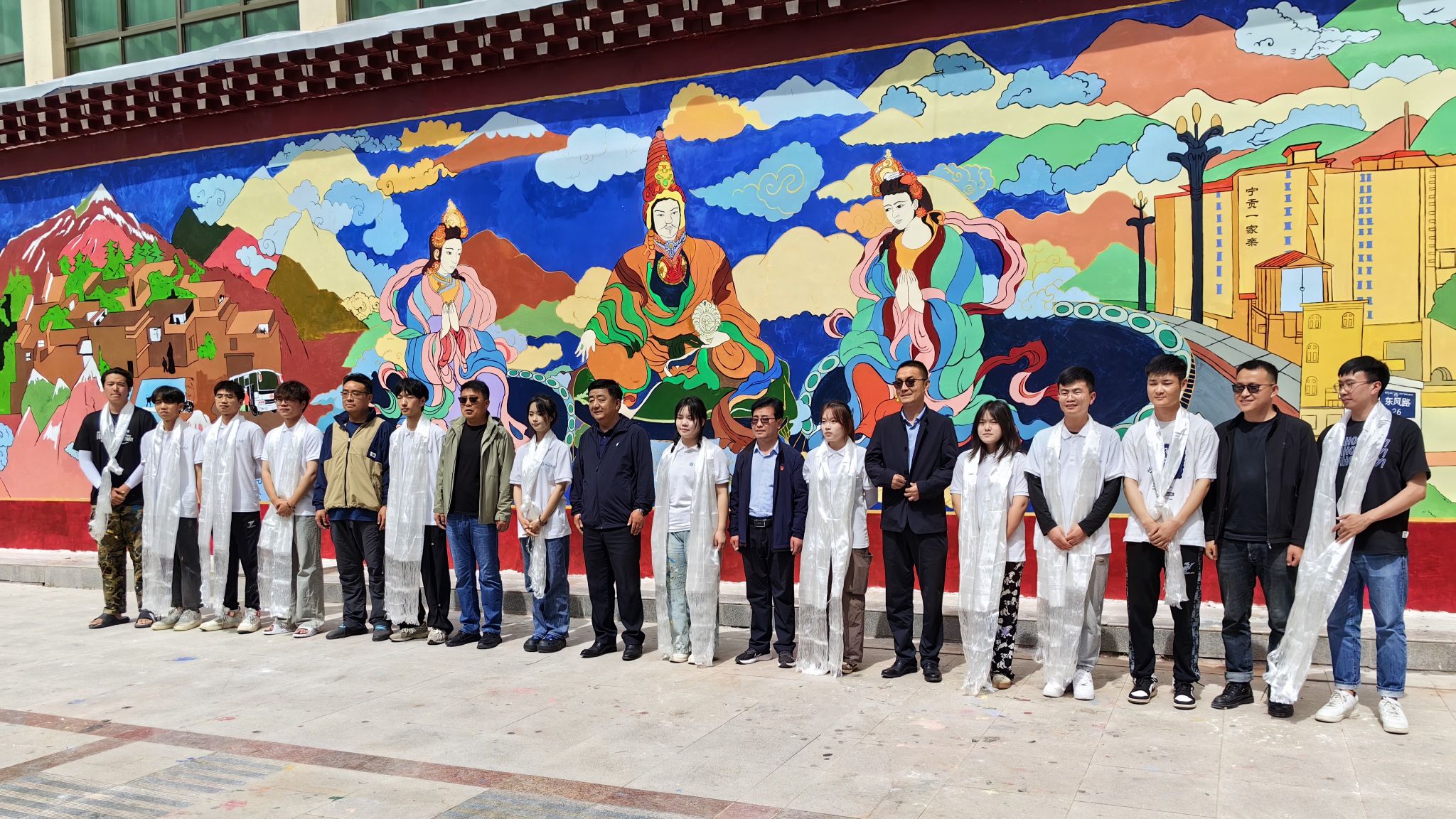 艺术设计学院初芒志愿服务队远赴新疆、西藏深入调研实践,充分感知多民族同频共振的力量,用青春画笔勾勒西部边陲美丽图景,进一步铸牢中华民族共同体意识。社会实践期间,团队共完成420㎡艺术墙绘,志愿时长达2000余小时,团中央“创青春”微信公众号以“艺术赋能!湖北工业大学为祖国中西部乡村振兴画上青春色彩”为题进行专题报道。