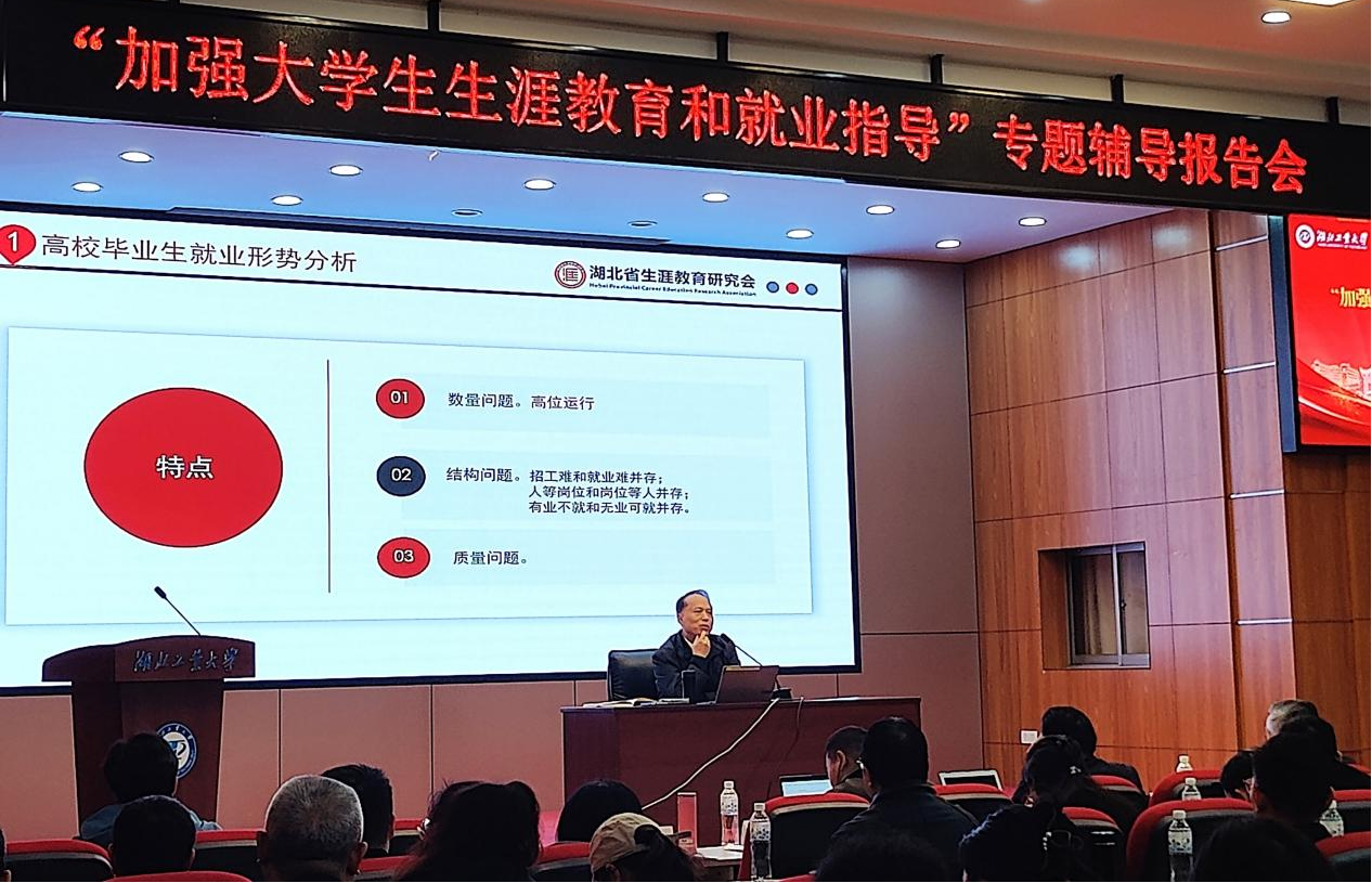 为深入落实高校立德树人根本任务,进一步提升大学生生涯教育与就业指导工作队伍的专业化水平,助力学生高质量充分就业,3月9日,“加强大学生生涯教育和就业指导”专题辅导报告会在学校博学堂举行。会议邀请到省教育厅原一级巡视员、湖北省生涯教育研究会会长张金元作辅导报告。