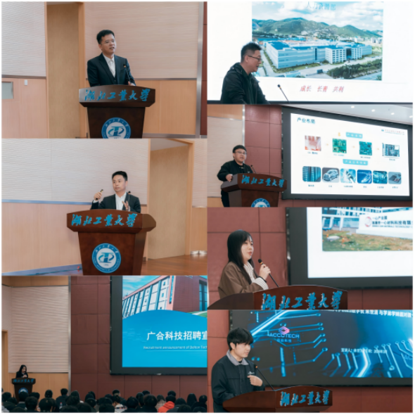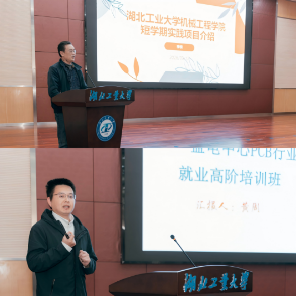 活动中,鼎勤科技首席顾问李敬科先生从行业发展现状、技术创新、AI赋能等维度,深度解析了PCB行业的发展脉络与未来趋势,为在场师生带来了一场兼具专业性与前瞻性的行业分享。随后,鼎勤科技总经理、我校电气学院2000级杰出校友杨海涛,黄石广合、黄石沪士、吉安生益、珠海市一心等企业代表依次登台,分别介绍了各企业的发展概况、核心业务、发展规划及人才招聘需求,为学子们提供了丰富的就业选择与清晰的职业发展方向。我校机械学院2021级优秀毕业生、现就职于鼎勤科技的朱世清作为学子代表,分享了从校园到职场的成长历程与岗位实践收获,为学弟学妹们提供了宝贵的就业参考。