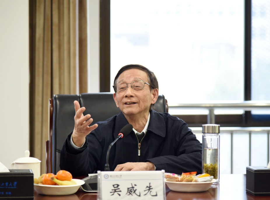 在听完冯校长的介绍之后,徐鹏航和吴威先校友先后发言,深情回忆了在母校学习的岁月和个人工作成长的经历,并就学校有关发展情况与参会人员进行了深入地交流和探讨,他们提出学校第一任务是教书育人,希望学校早日进入一流行列,发展进步走在前面;学习华中科大、合肥等科技创新的先进经验,择优扶强树品牌,瞄准海洋工程制造、登月工程等国家重大战略和需求,在先进装备制造领域坚持集群化、品牌化、链式化、智能化方向,探索机、电、光、量子融合一体化发展;希望学校充分发挥艺术设计和土木建筑的学科优势,挖掘湖北丰厚的古建筑资源,支持古建筑保护与开发,积极参与打造古建筑示范样板;希望学校要在创建一流学科上有所突破,聚焦优势特色,重点投入培养引进带头人;要加快产学研融合发展,紧跟党和国家政策,走进工厂和市场;要加快数字化智能化转型,加大应用新技术。