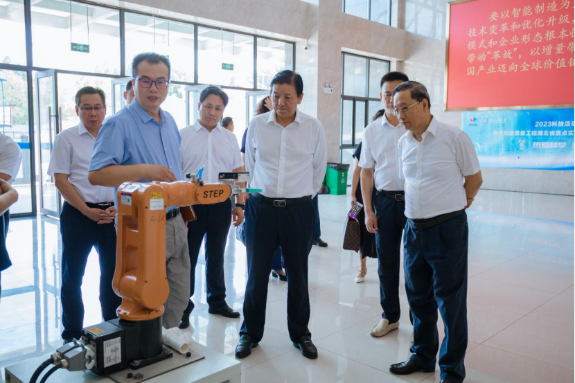 万红一行先后实地调研了酿酒新技术及装备湖北省中试基地、农机工程研究设计院农机装备智能化工程技术研究中心、明清家具博物馆、芯片产业学院和科技成果展示厅等。
