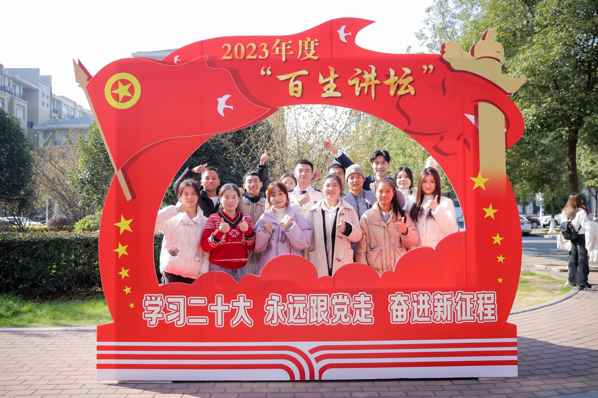 “百生讲坛”是湖北省高校共青团思想政治引领的核心品牌活动。校团委以承办“百生讲坛”省级决赛为契机,持续推进学习贯彻习近平新时代中国特色社会主义思想在青年学子中落地生根,青年人用自身独特的视角和话语传递奋进力量,将习近平新时代中国特色社会主义思想与学习感悟、实践心得相结合,在大思政舞台上感染、激励青年一辈。承办比赛过程中,校团委广泛发动校院两级团学骨干、青年志愿者力量,深度参与到活动组织的各方面和全过程。让青年人的活动青年自己办,让青年学生在鲜活的青春故事和实践课堂里受教育、作贡献、长才干。