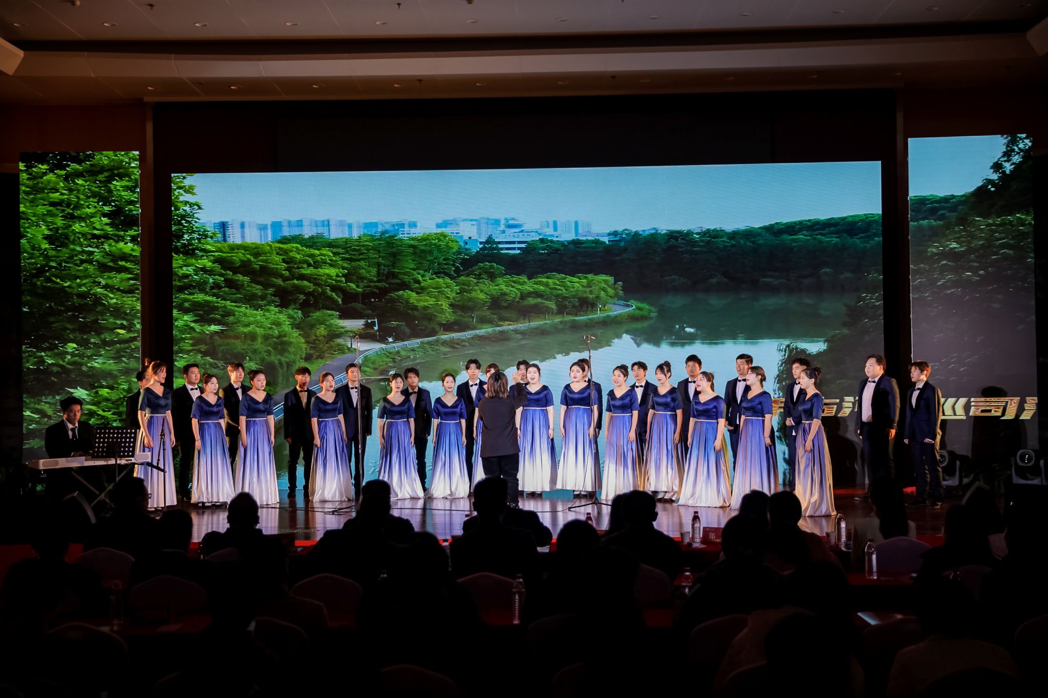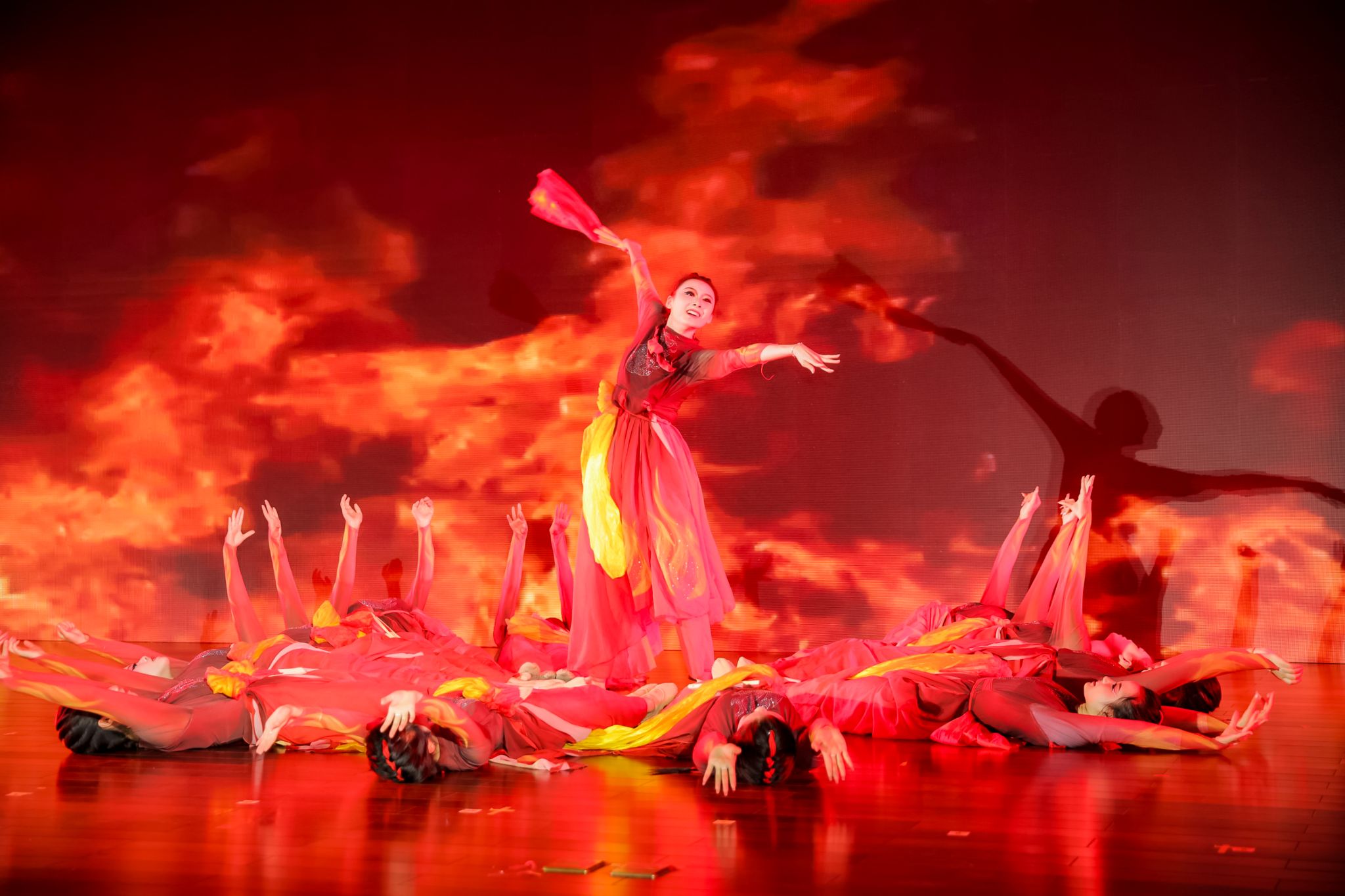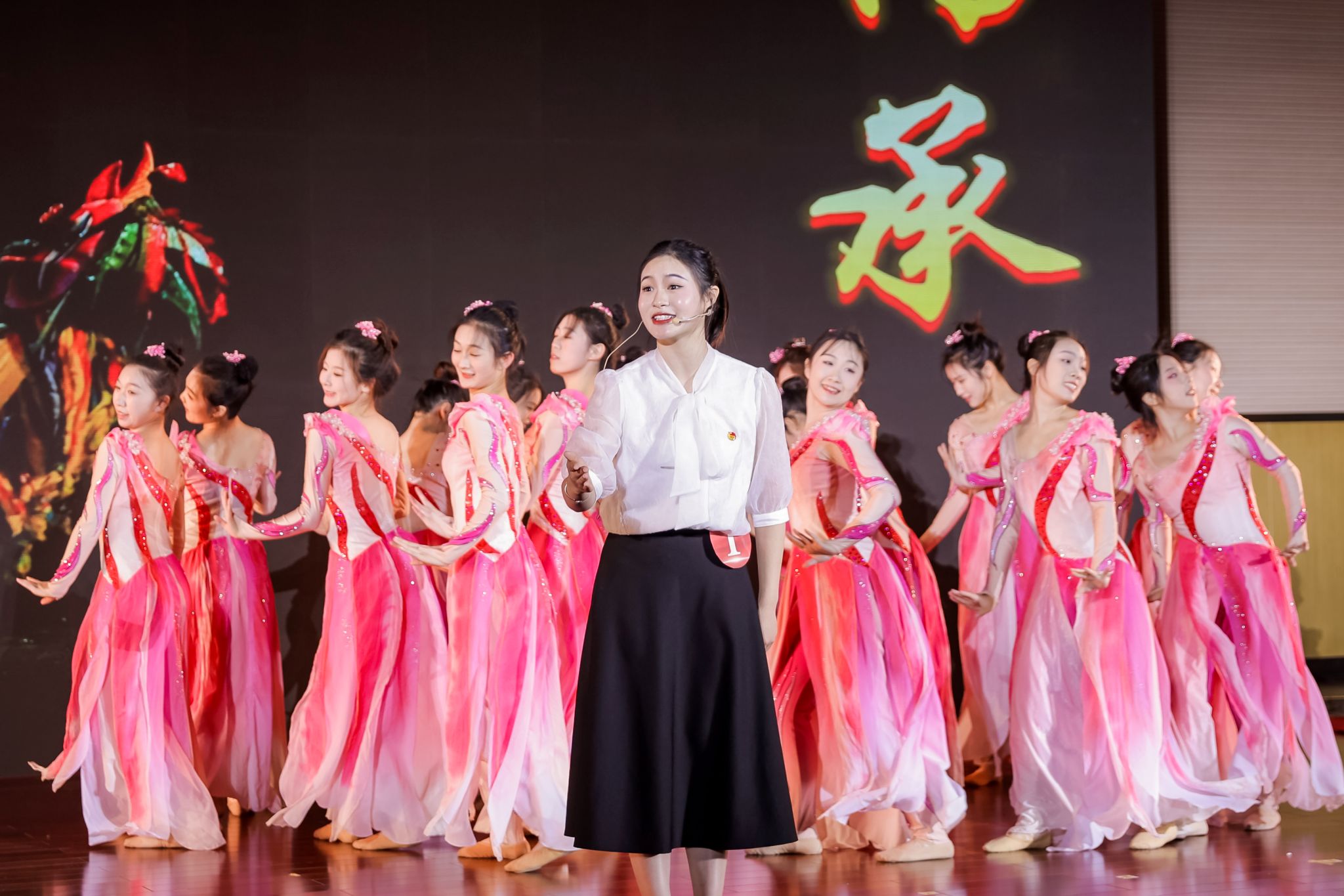 校大学生艺术团的同学们用舞蹈的形式展示了中国革命和中国共产党的发展历程,合唱团的同学们为现场观众带来了湖工大版的《我喜欢》。
