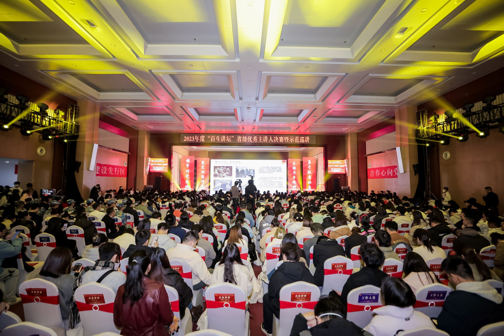 本届“百生讲坛”共吸引全省117所高校的544位主讲人参与省级遴选,经“班、院、校、省”逐级联动,最终15位主讲人站上决赛舞台。决赛创新评审方式,贯彻“百生讲、百生评”的办赛理念,不设专家评审,由现场300余名青年师生组成的大众评审团进行评分。