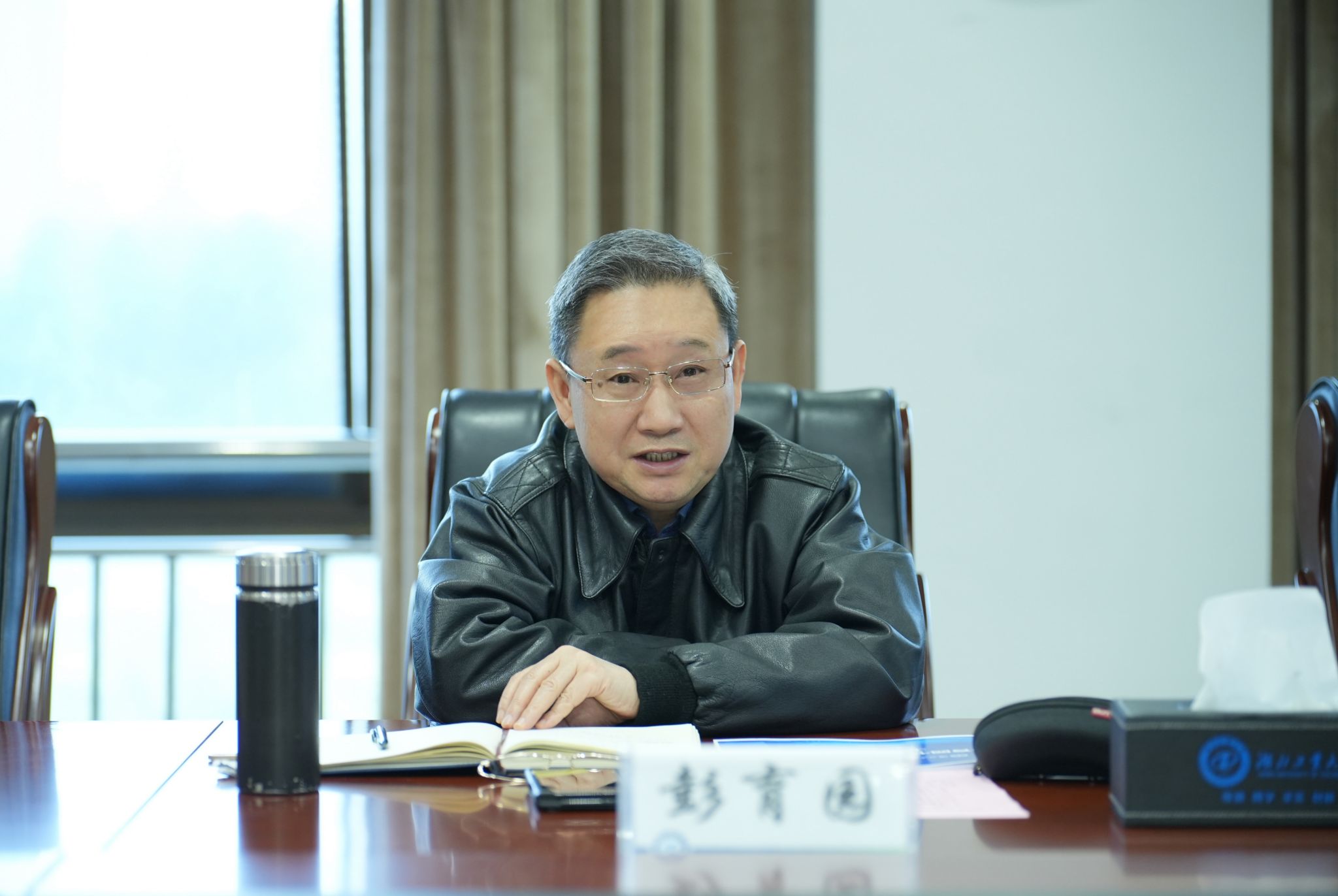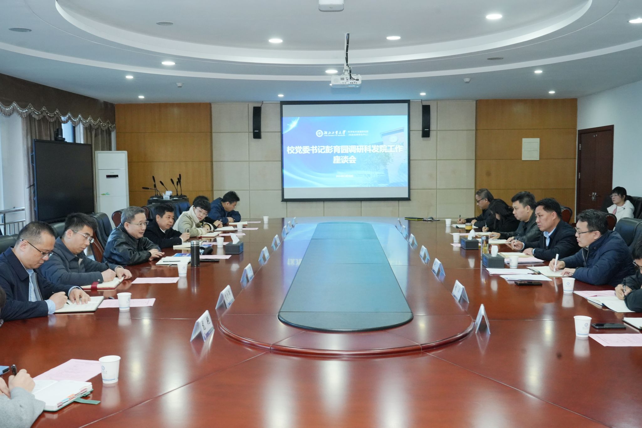 彭育园听取汇报后指出,学校科研工作要紧紧围绕世界眼光、中国视野、湖北目标、工大行动和科发院担当这五个方面全面推进。一是,当今世界科学技术日新月异,科技与产业结合日趋紧密。科发院要做奋进者和开拓者,要具有全球胸襟、国际视野,瞄准世界科技前沿,加强与国际头部企业和顶尖高校的交流,努力在国际科研合作和交流方面取得新进展。二是,学校要跻身中国好大学行列,科技创新工作更要精准对标国内同类高校。要坚持目标导向和问题导向,加速实现大学者、大平台、大成果、大奖项方面的突破,增强服务全国重要产业链创新链的能力。三是,学校要站稳省属高校第一方阵队列,科研工作更要继续奋力向前。要主动融入武汉科创中心建设,积极参与湖北实验室及高水平新型研发机构建设,找准定位、抢抓机遇、加强协作,全面提升学校科技创新策源能力。四是,要以学校“十四五”事业发展规划为引领,聚焦一流学科建设行动,全面梳理基于行业面向的产业链技术创新图谱及创新资源清单,加强学科交叉融合和协同攻关,以标志性成果产出赋能学科显示度提升。五是,要将有组织科研落到实处,深入挖掘有实力有潜力的人才和团队,加大对青年科技人才的支持力度,积极破除科研人员事业发展的痛点难点堵点。聚焦优势领域,对接行业需求,整合资源,形成合力,发掘独门绝技、彰显湖工大特色和科发院担当。