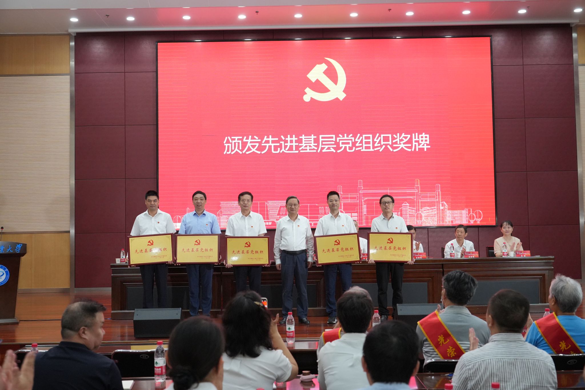大会在庄严的国歌声中开幕。校党委副书记蔡光兴宣读表彰文件。学校有50名优秀共产党员、35名优秀党务工作者、30个基层党组织获表彰。