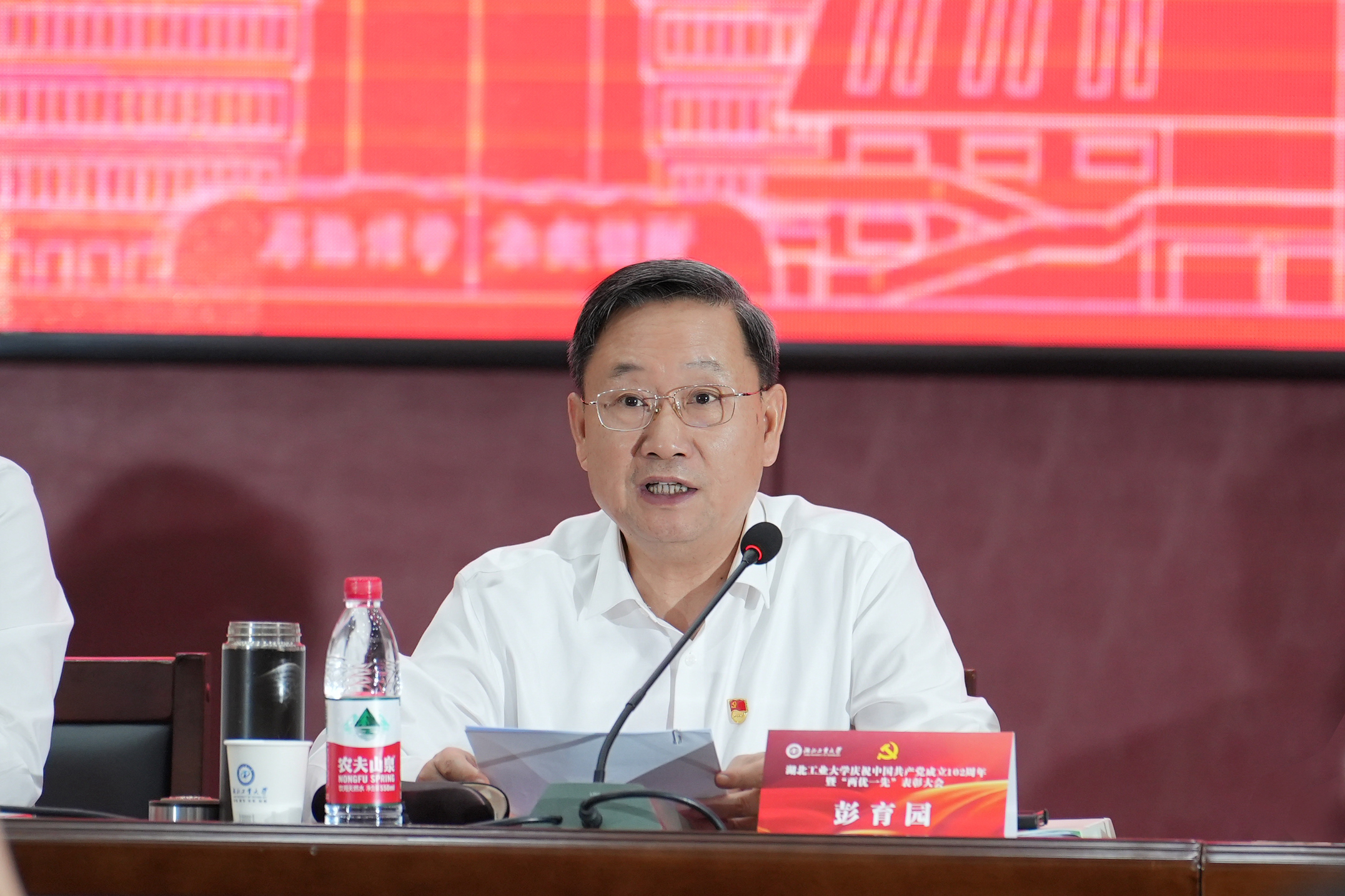 彭育园指出,当前学校党建工作特点鲜明,党的政治建设得到持续加强,党建的工作水平得到持续提高,党建引领事业发展的效果得到持续提升。他希望学校各级党组织和全体党员,要胸怀“使命在肩,奋斗有我”的迫切责任感,站在历史新征程的起点上,以更加紧密地的姿态,团结在以习近平同志为核心的党中央周围,带领广大师生,勇于担当,善作善成,砥砺奋进,争创一流,为全面建成绿色工业学科特色鲜明的高水平工业大学努力奋斗,为实现中华民族伟大复兴贡献力量!
