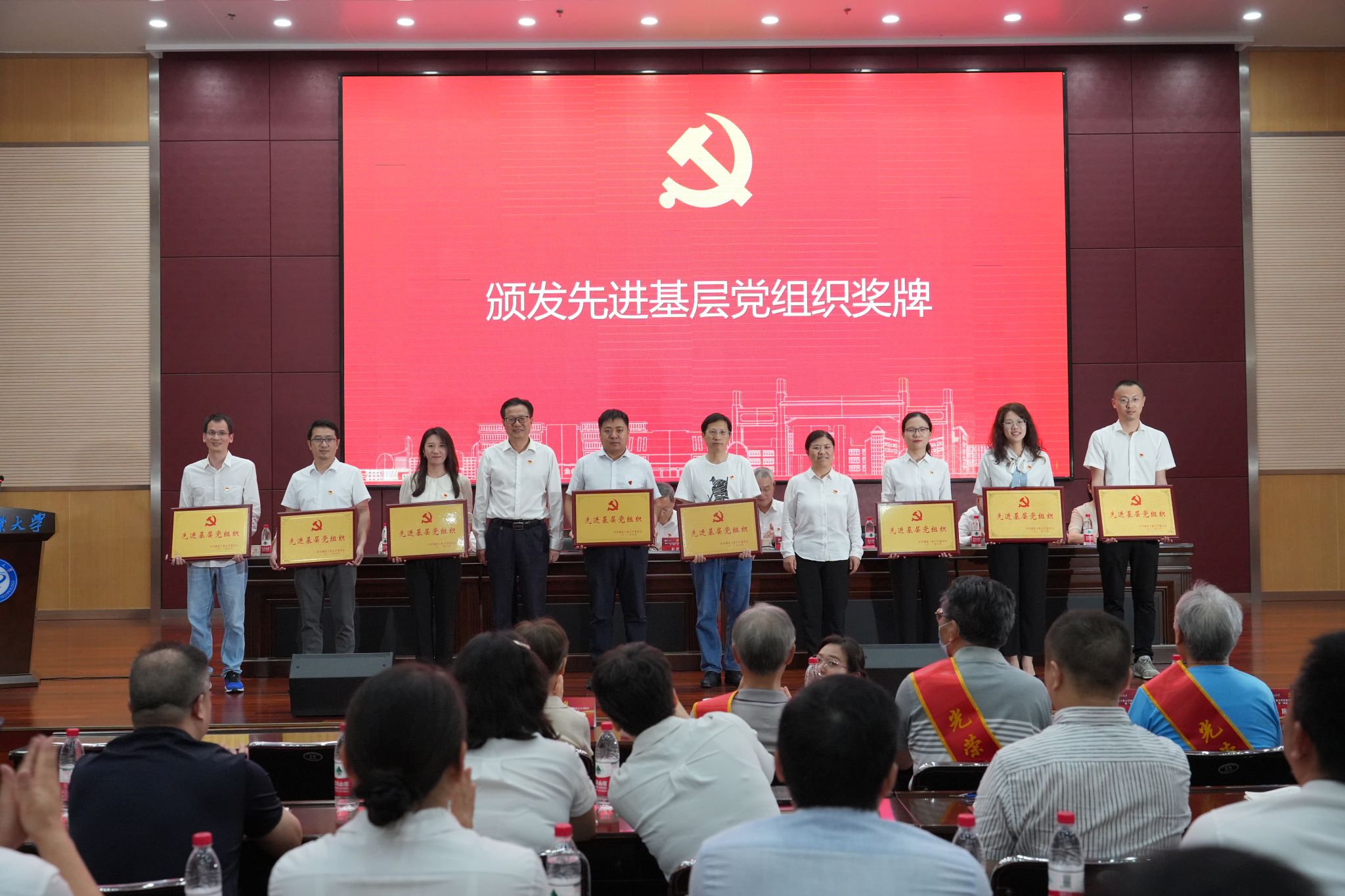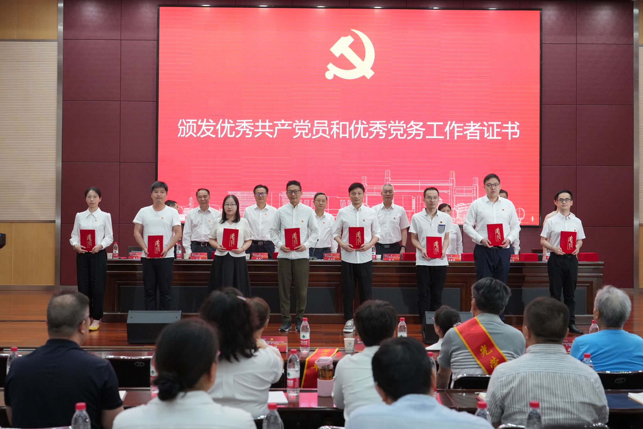 全体校领导、党委常委为优秀共产党员和优秀党务工作者颁发证书。