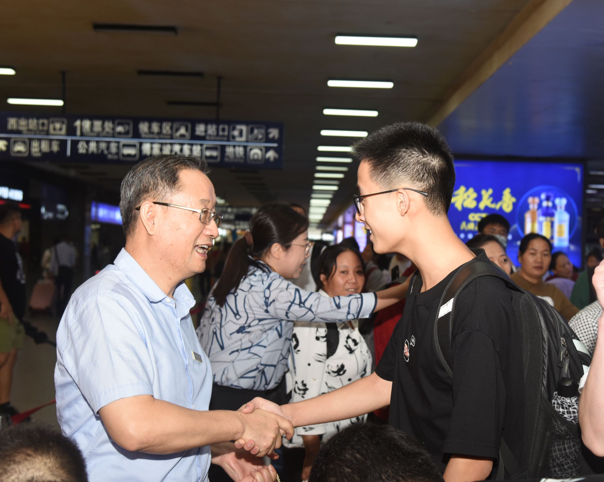 “最近的关切送给五湖四海的你”,当日上午,校党委书记彭育园前往武昌火车站接站,迎接来自五湖四海的同学们,对新同学与家长们亲切慰问,并期望新同学们“在新的起点,实现新的梦想”。