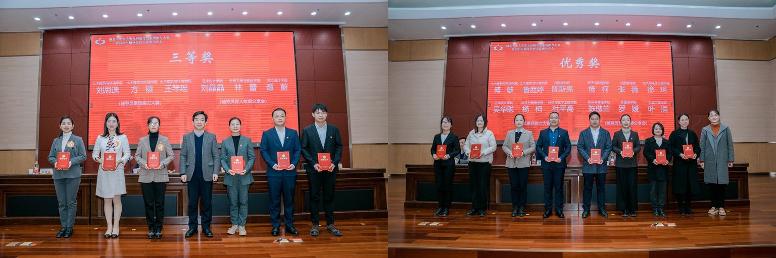 为深入贯彻习近平新时代中国特色社会主义思想,全面落实立德树人根本任务,加强新时代辅导员队伍建设,推进辅导员专业化职业化发展,突出以赛带练、以赛代训、以赛促学、以赛促建,充分展示我校辅导员以生为本、潜心育人的优秀品质和育人实效。12月1日,学校第九届辅导员素质能力大赛暨2023年辅导员育人故事分享会决赛在学校图书馆报告厅举行。校党委书记彭育园,校党委副书记胡晓艳,校党委常委、副校长宋小春,校党委常委桂丽出席颁奖仪式。