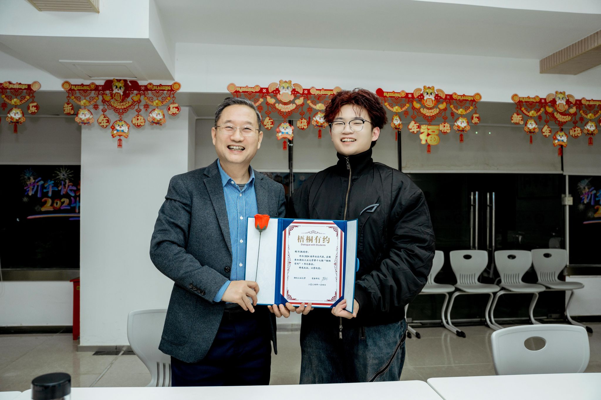 座谈会后,彭育园为参会师生签赠了“梧桐有约”专属纪念证书。