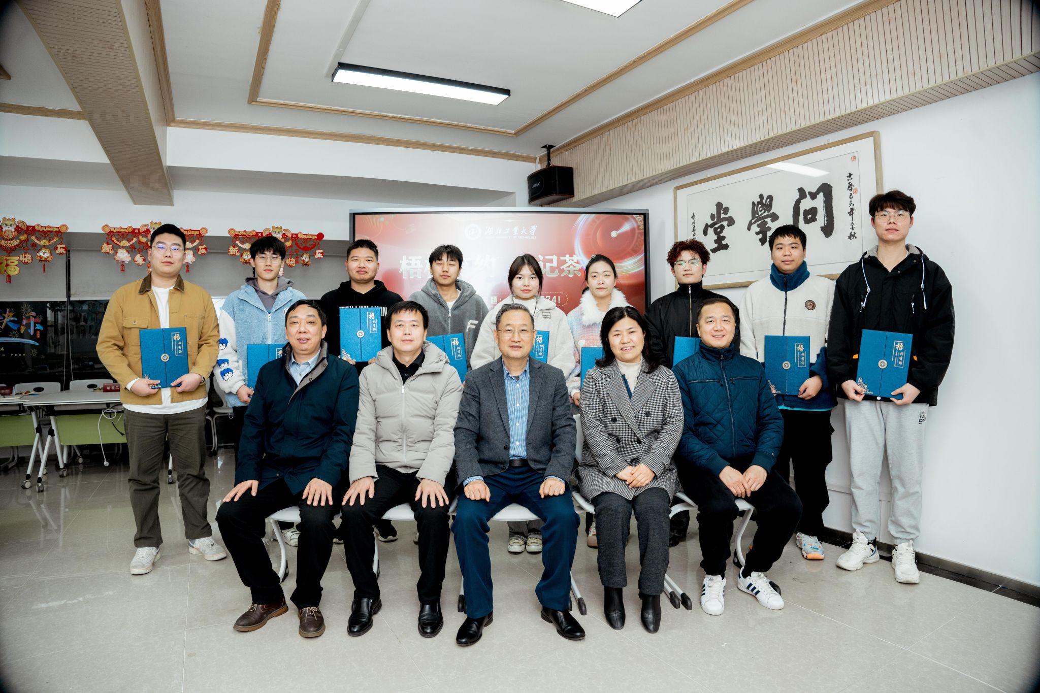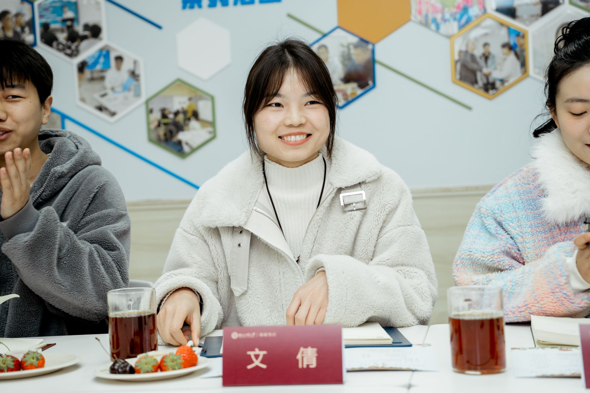 茶会上,同学们介绍了近况与感受。职师学院李欣如同学已保研至厦门大学,她认为大学期间寻到“学习搭子”将大幅提高学习效率,同时希望能够多参加科研锻炼以提高核心竞争力。生食学院吴虹蝶同学在大四经历了企业实习实践后,调整发展方向,决定申请学校国际合作项目硕博连读。电气学院柯善焜谈到在一站式社区担任朋辈学业导师经历,收获了助人的快乐和自身的成长,未来他将在人工智能领域读研深造。底特律学院杨一博长期在力创实验室学习实践,现已找到了一份从事专业领域科学研究的满意工作。工设学院张池同学虽然考研笔试没有达到预定目标,但他表示接下来将尽最大努力进行复试或调剂。经管学院罗从文、材化学院文倩在秋招时通过自己的努力收获了高新企业录用函,他们都希望学校能多为文科类以及女生就业提供更多帮扶。计算机学院牛宇松来自辽宁,目前正在备考公务员,他希望学校能多提供北方的优质企业资源。土环学院胡沐驰大学期间是学校创新创业协会副会长,新的一年他将继续努力求职,并将继续耕耘创业项目。