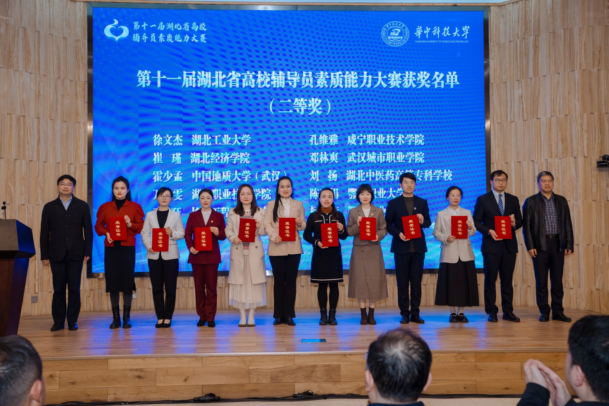 3月19日,由中共湖北省委教育工委、湖北省教育厅主办的第十一届湖北省高校辅导员素质能力大赛在华中科技大学落下帷幕。学校推荐的两名选手均获佳绩,计算机学院辅导员程宇斩获一等奖,电气学院辅导员徐文杰斩获二等奖,突破我校在该赛事的历史记录,获奖等次与人数位列省属院校第一,充分展示了我校辅导员职业风采和队伍建设成效。校党委副书记胡晓艳应邀出席颁奖典礼,并对我校获奖选手与工作人员表示慰问。