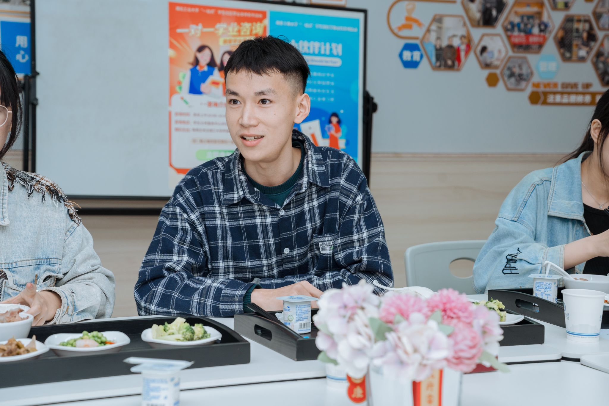 本次午餐会以“一起更优秀”为主题,师生聚焦学校人才培养与一站式学生社区学业支持工作展开交流。同学们认为学校朋辈学业导师队伍的制度设计,搭建了跨学科专业、跨院系年级的交流平台,通过选拔课程辅导、学术科研、国际交流、通用能力等四类朋辈学业导师,让优秀典型丰富多元,让学业支持覆盖多维,同学们也逐渐从学业支持的“受益者”转变成长为“助人者”“引领者”。参会同学分享提到开阔眼界、增进交流、参与科研、关注讯息等是大学学习中应重点关注的好方法,希望学弟学妹们增强学习主动性,建议学校进一步扩大社区学业支持活动宣传力度。针对学校人才培养工作,同学们围绕创新班办学思路、学术科研氛围、国际交流资源、人文素养培养等方面提出建议。