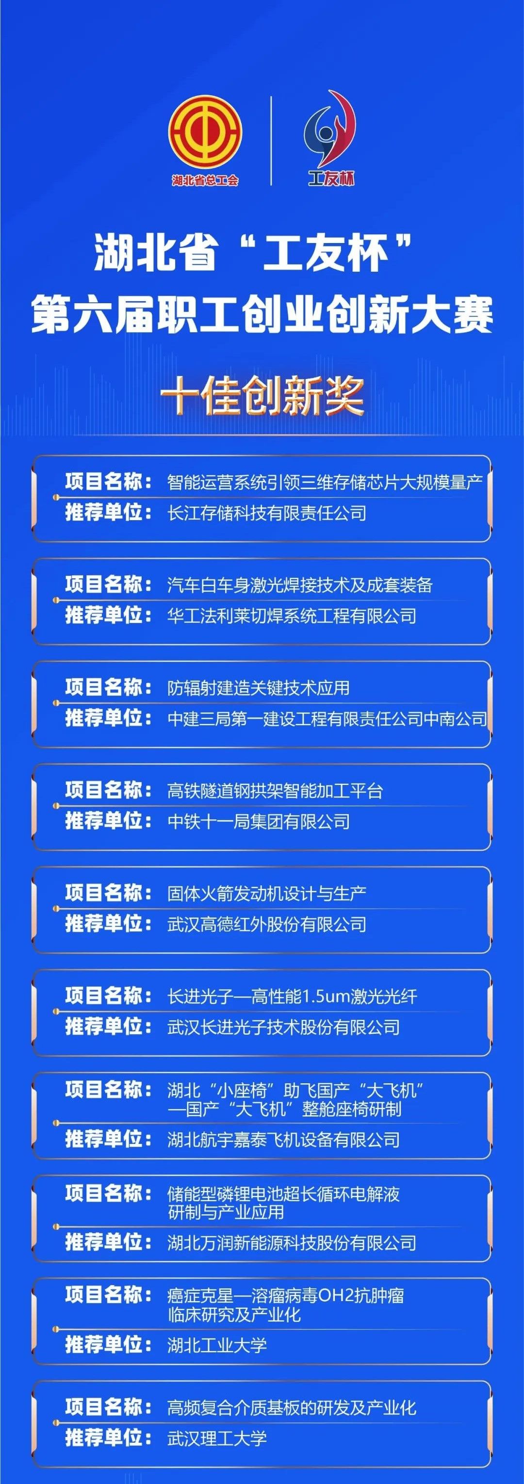 据悉,大赛组委会将择期举办成果展示活动。后续,将按照相关规定和程序,对“双十佳”项目开展资格复审,符合相关条件的按有关规定申报“湖北五一劳动奖”。