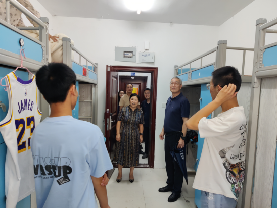 上午11时许,彭育园一行前往北苑查看。北苑1-3栋宿舍园区,经过暑期全面的维修,整个园区焕然一新,宿舍内干净整洁、家具摆放整齐有序。彭育园一行沿途检查了相关学院迎新点的布置和准备工作,重点对北苑5、6栋学生宿舍及周边环境改造情况进行了全面检查,详细询问了环境改造、家具安装、卫生清洁、水电设施等改造情况。