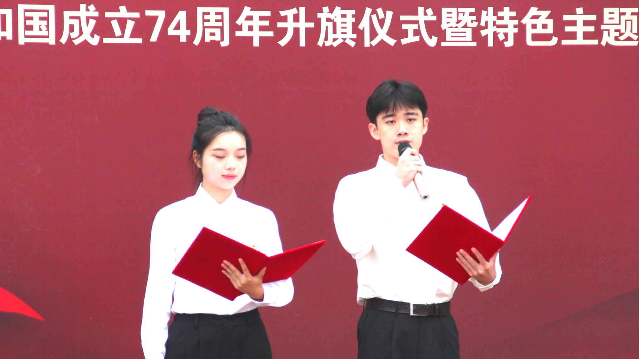 “我的祖国,高山巍峨,雄壮的山峰俯瞰历史风狂雨落。”学校大学生艺术团以一首诗朗诵《我的祖国》向祖国母亲深情告白,为祖国母亲74岁生日献礼!