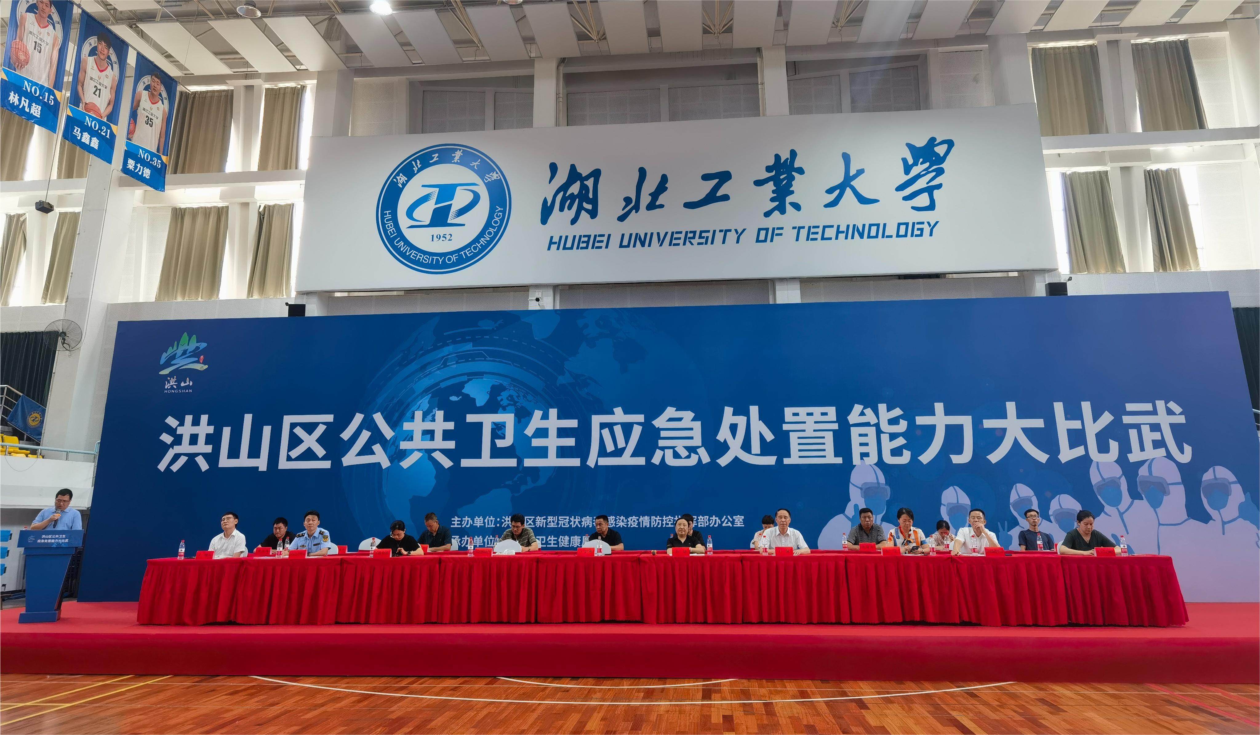 2023年7月10日至11日,“洪山区公共卫生应急处置能力大比武”活动在我校体育馆举办。区政府副区长赵群,市疾控中心党委书记、主任王家刚,湖北工业大学党委常委、副校长王侃等出席活动。