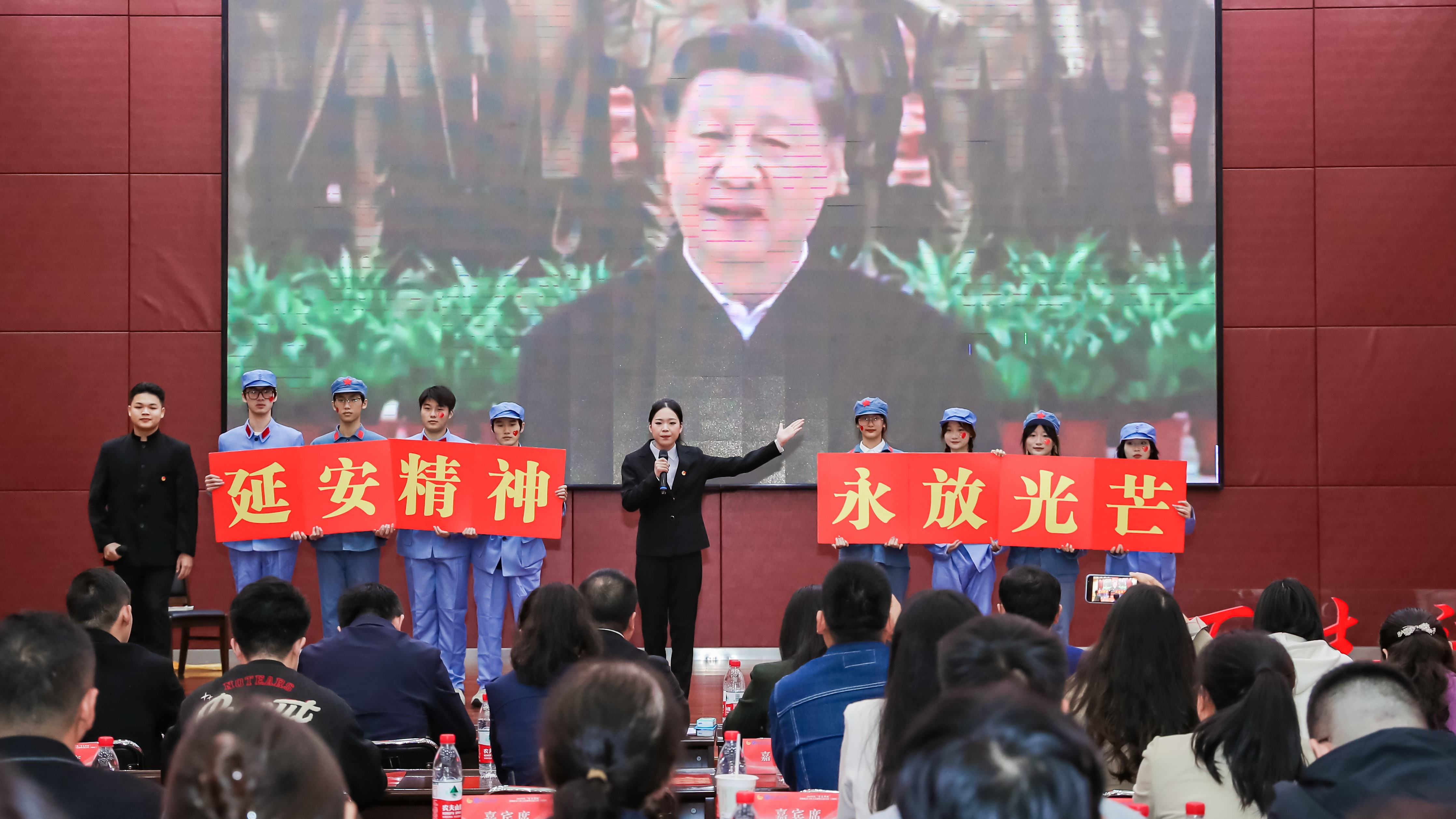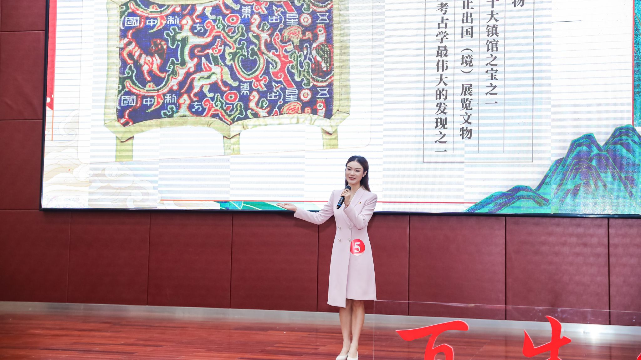 结合学习成果,用青言青语讲好党的创新理论。“敢为天下先,无畏才有为”,左丽讲述了华中科技大学教科人求真务实、心怀大局的胸襟和胆魄;“为人民发声,讲好中国故事”,来自长江大学的王韶杰传承着新时代传媒人为时代而诵,传播党的声音的光荣使命;来自武汉工程大学的汪巧玲用打赢脱贫攻坚战的历史性成就,号召更多青年人投身民族复兴的宏伟征程;“从1938年大批有志青年前往延安参加抗日救亡运动,到知识青年上山下乡,再到驻村扶贫”,来自湖北商贸学院的张羽欣为现场观众展示全心全意为人民服务的延安精神;来自中南民族大学的冉巾丘以“五星出东方利中国”的汉代蜀锦护臂为切入点,带领在场观众领略中华文明多元一体的魅力。
