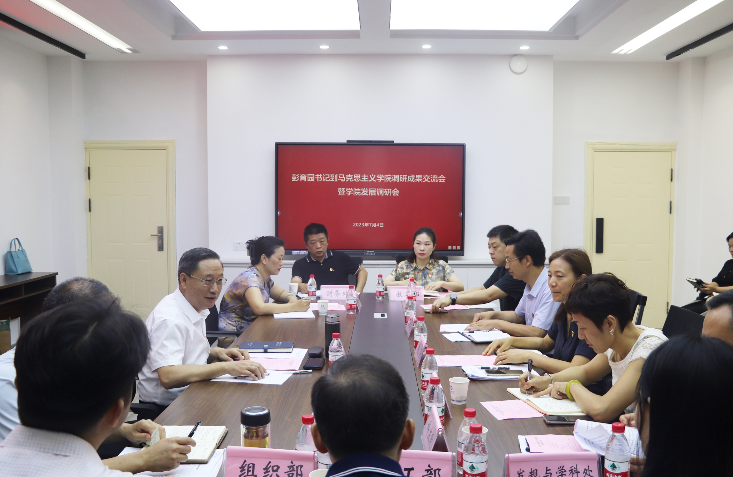 彭育园对学院调查研究成果给予充分肯定。他指出,马院新领导班子有新面貌新精神,问题抓得准,目标定得好,所思所想体现了真正的反思。他指出,定期研究“大思政课”建设,定期研究马院建设,定期到马院调研,建好马院是党中央和校党委的要求。党的十八大以后,特别是全国思想政治工作会议、高校思想政治工作会议召开以后,建好马克思主义学院和马克思主义理论学科面临全国最好的机遇,最好的态势,最好的外部环境。希望马院狠抓机遇,在校党委的高度重视下,以争创省级重点马院为目标,尽快实现马院的跨越式发展。