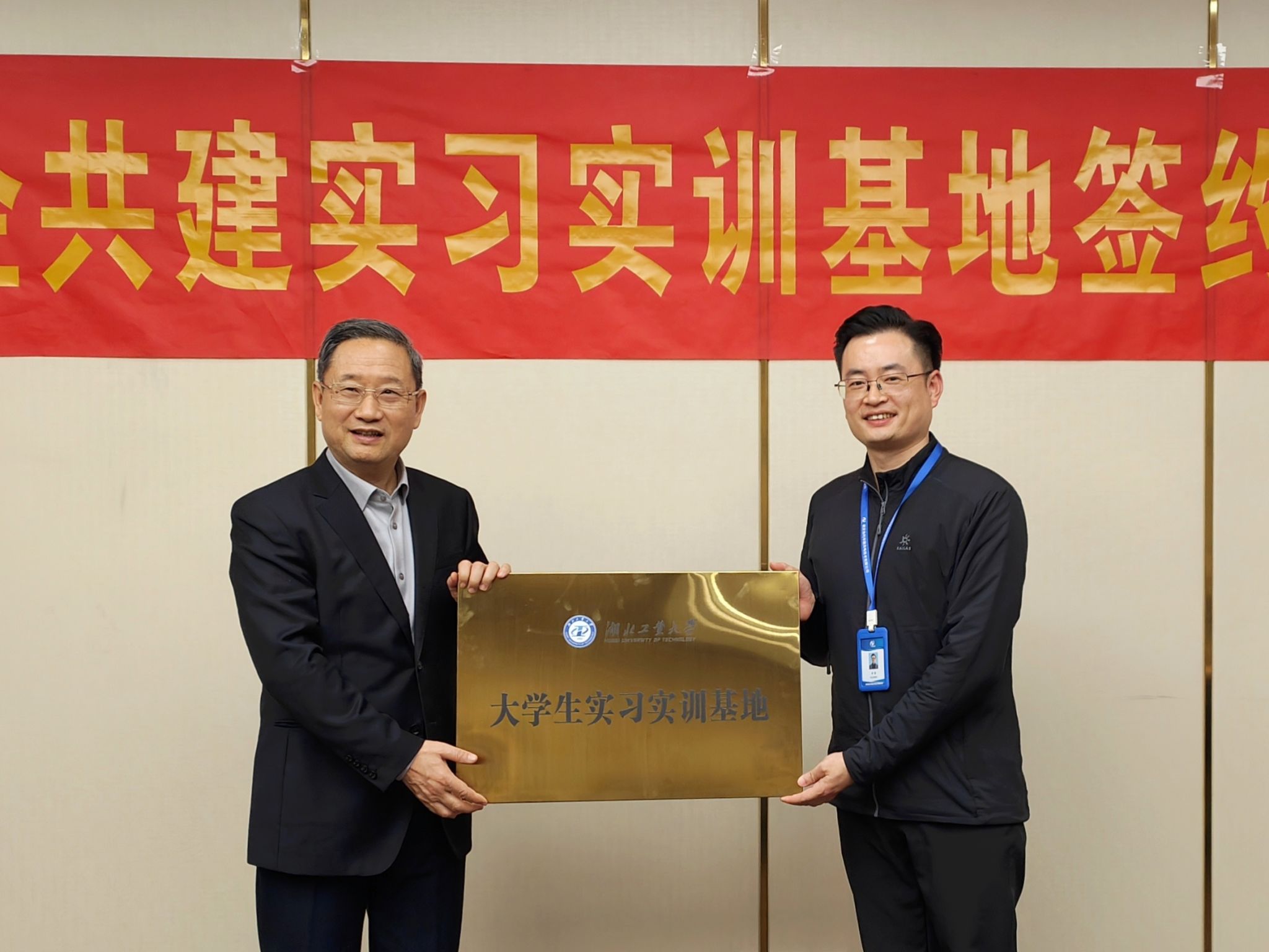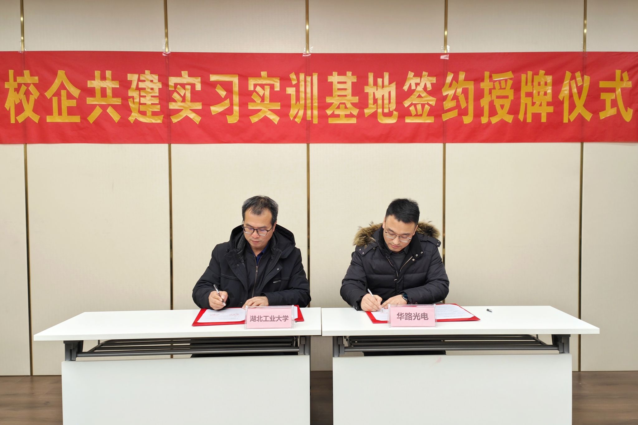 根据议程安排,教务处处长张道德与梁相鹏签署校企共建实习实训基地协议。彭育园与李罡共同为湖北工业大学大学生实习实训基地揭牌。