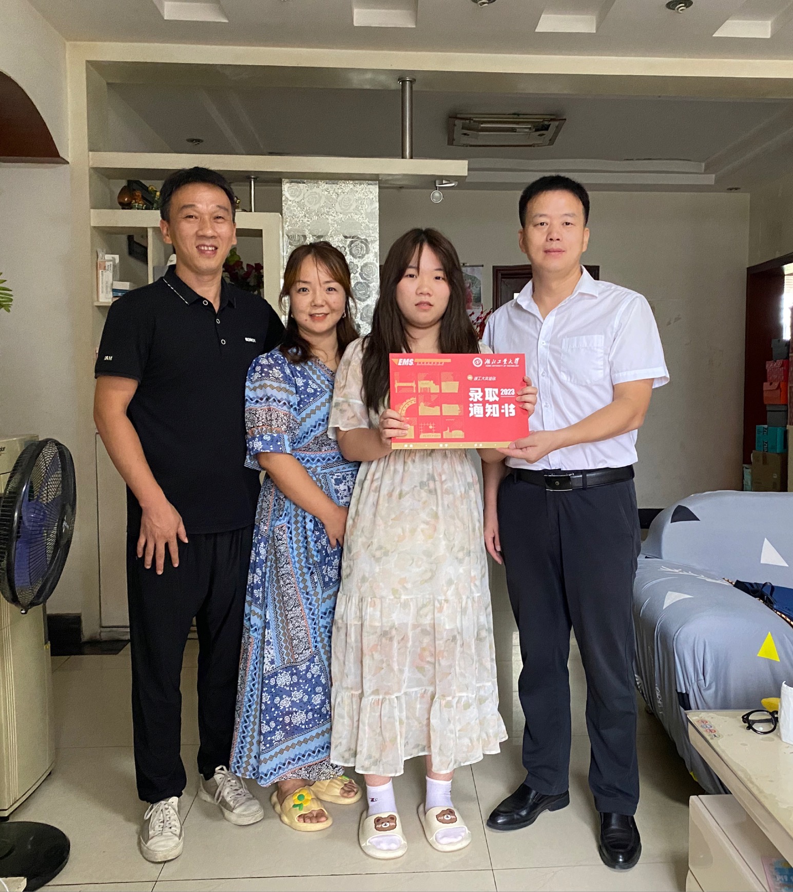 7月25日,招生与就业指导处处长杨伟国、电气与电子工程学院党委书记王东明、党委副书记王正江等一行来到襄阳开展家访活动,并化身“邮差”将录取通知书送至部分2023级新生手中。