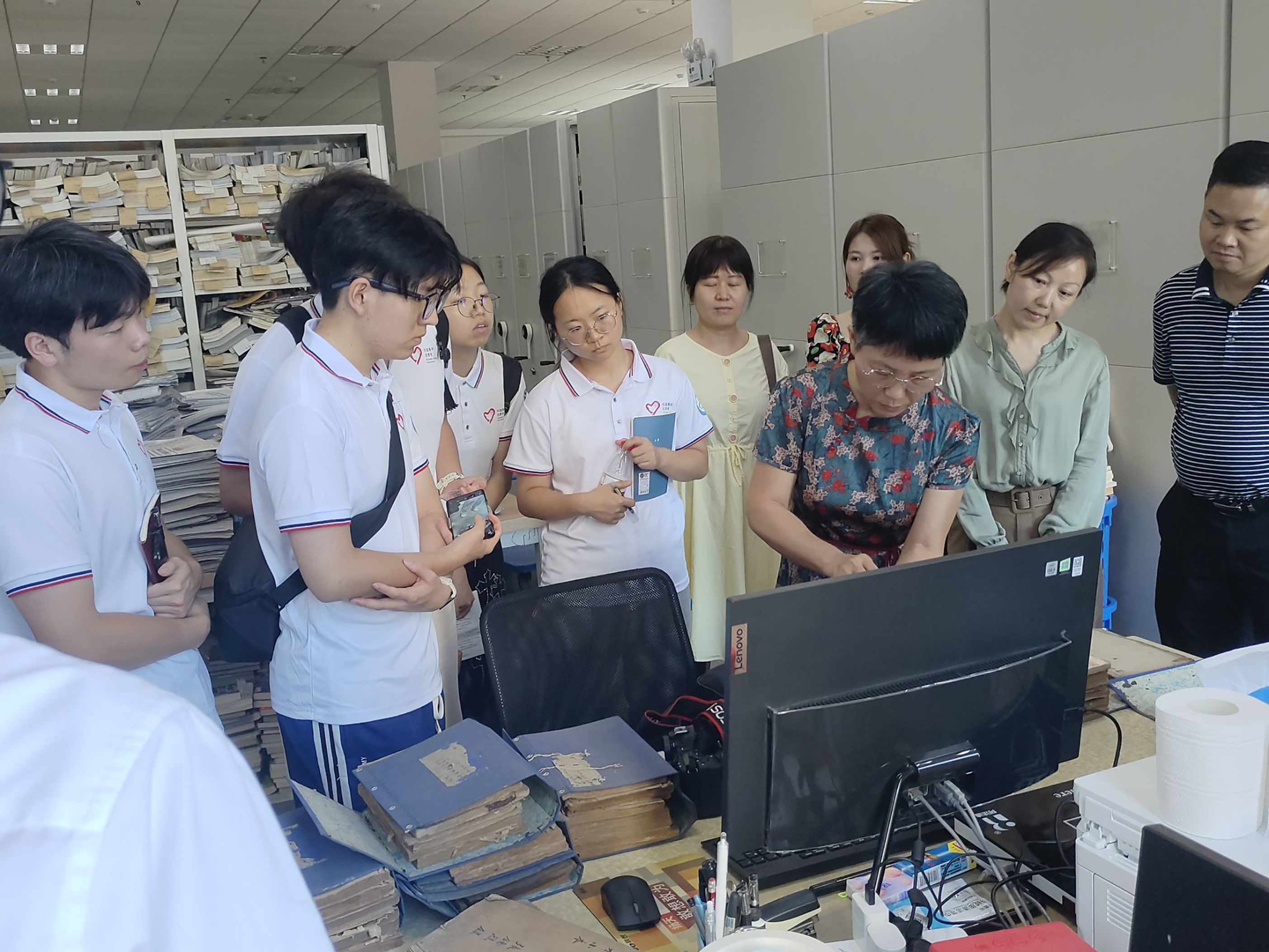 之后,黄冈市图书馆古籍部何小曼老师向队员们讲解古籍保护的基本概念与甄别,在何老师的指导下,队员们来到库房观摩了黄梅县图书馆的馆藏古籍,聆听老师的现场教学。何老师告诉队员们,古籍保护需要耐得住寂寞、沉得下心,同时又要坚守品质。