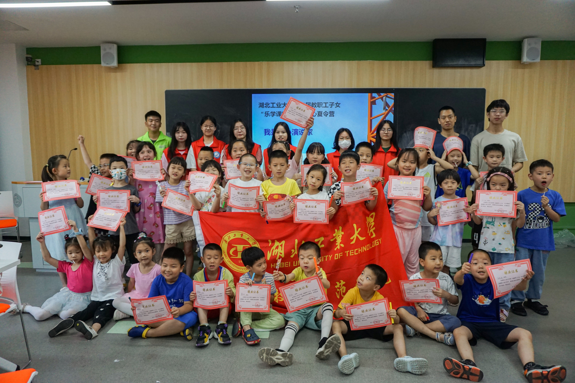 7月11日,湖北工业大学第二届教职工子女“乐学课堂”暑期爱心夏令营顺利结营。本次夏令营开设“小小演说家”“神奇智能车”两个课程,60余名教职工子女参加并结业。