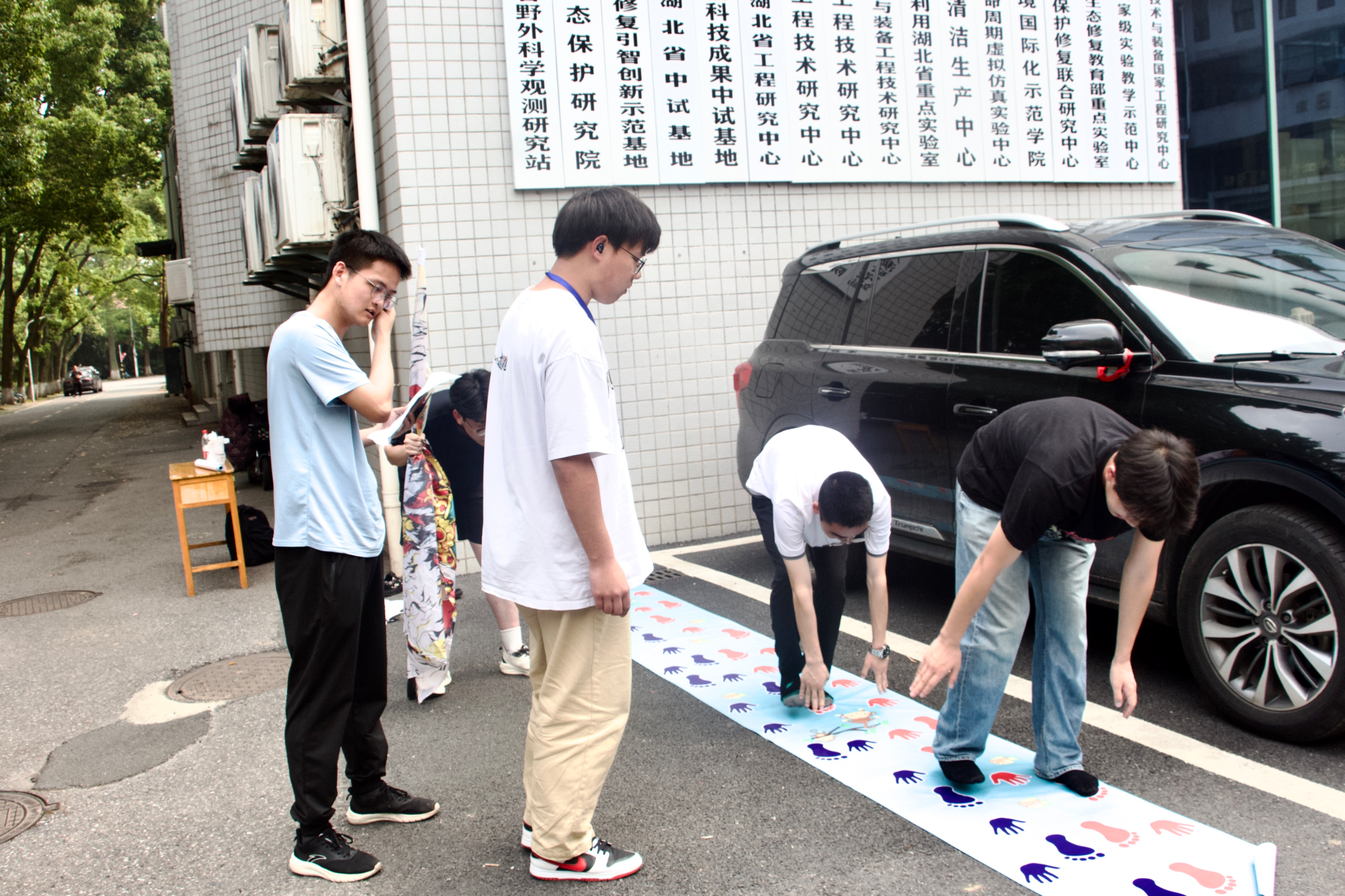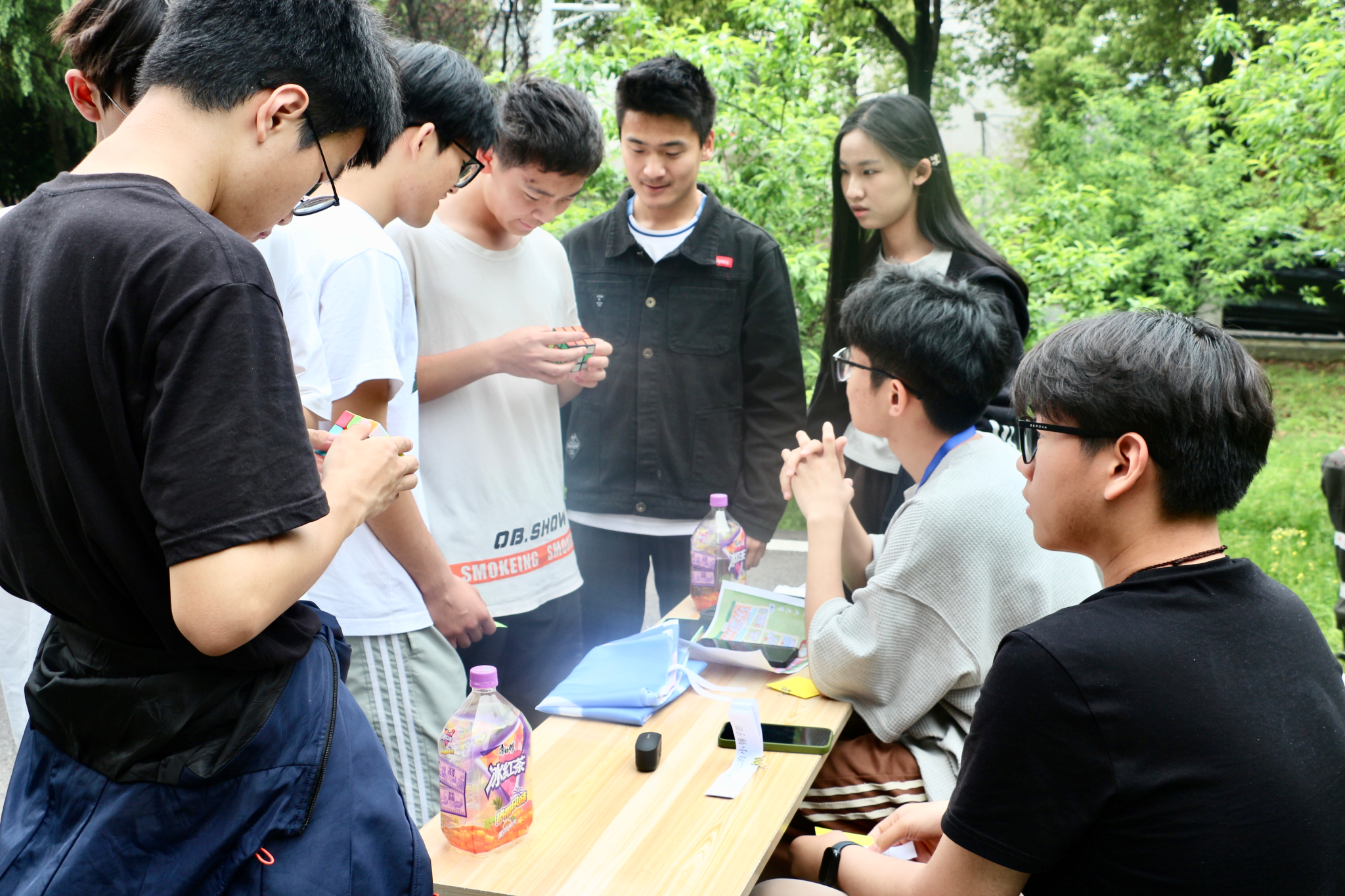 各参赛队首先在东区食堂门口集合,由工作人员现场讲解活动规则之后,同学们踏上了这次定向越野旅程。在“工图我来猜”任务点,每队派出一名代表在相似的零件与三视图中选择相对应的进行匹配。在“校史沿革”环节,同学们被分成不同小组,每组由一名挑战者佩戴眼罩,其需回答有关校史的问题,并绕过摆在地面上的路障,才算通关。