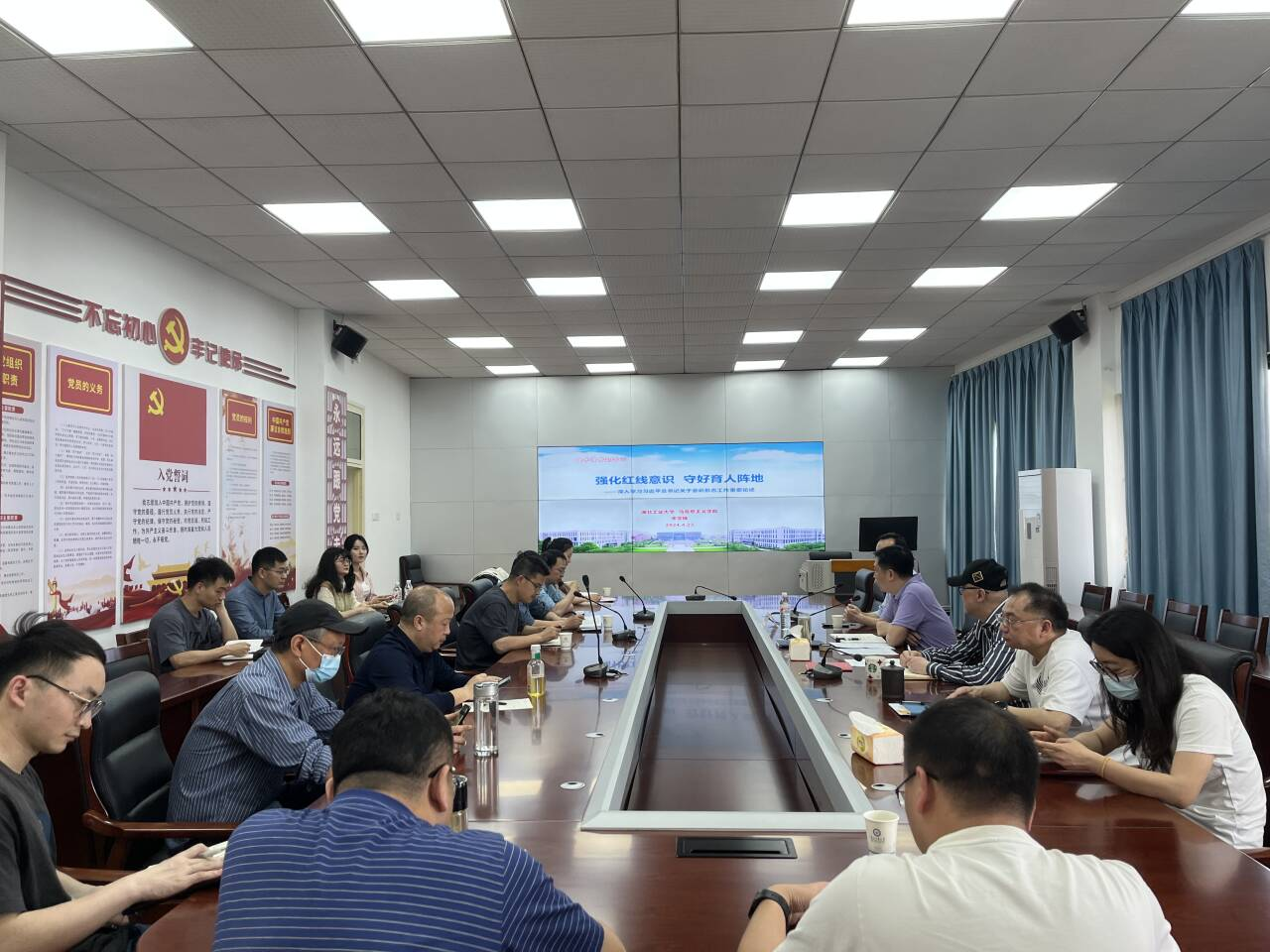 学院党委理论学习中心组召开了以安全教育为主题的学习(扩大)会,学院党委委员、相关中层干部参加了此次学习。会议邀请了湖北工业大学党的创新理论学习宣传与研究中心主任、特聘研究员李学锋做《强化红线意识,守好育人阵地》的主题讲座。会上,与会人员围绕主题开展交流讨论。