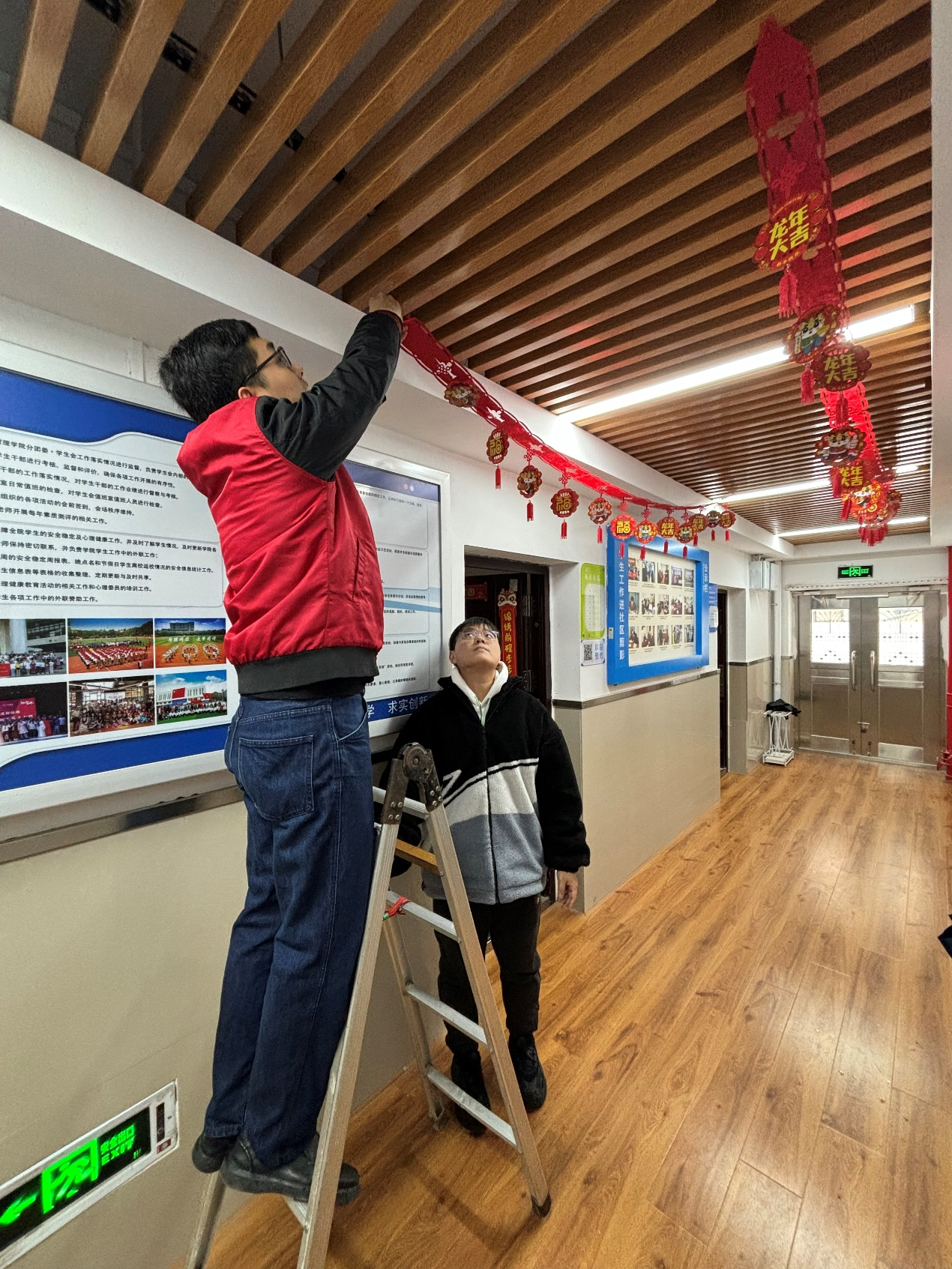2月25日,与理同芯“一站式”学生社区贴上对联以及挂上灯笼和拉花,充满年味的“一站式”学生社区给同学们带来和谐和温馨。